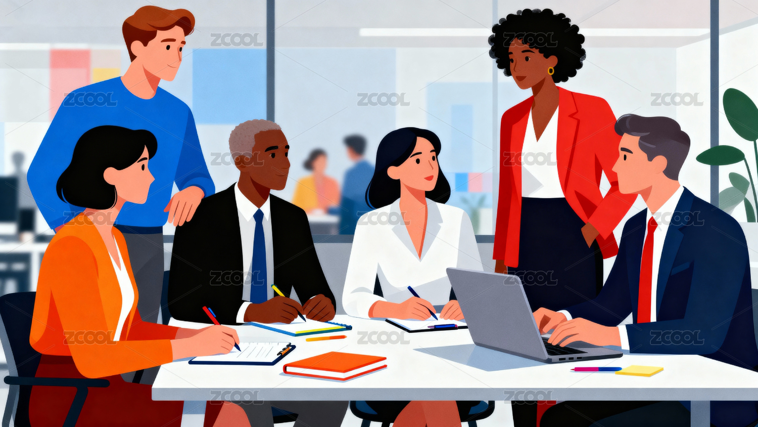 扁平,上班族,销售,开会,会议,工作,上班,场景,插画