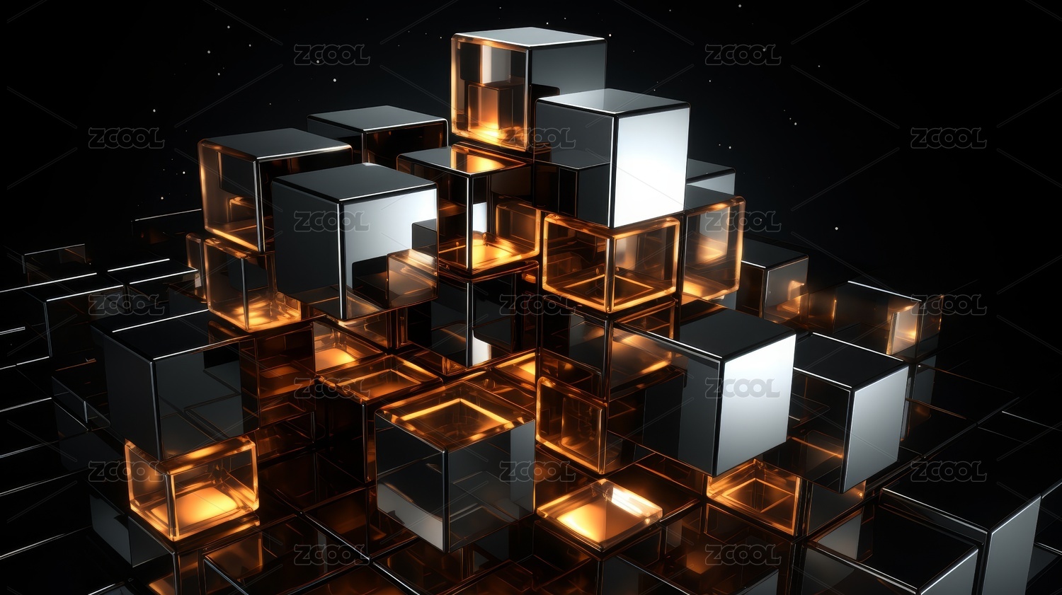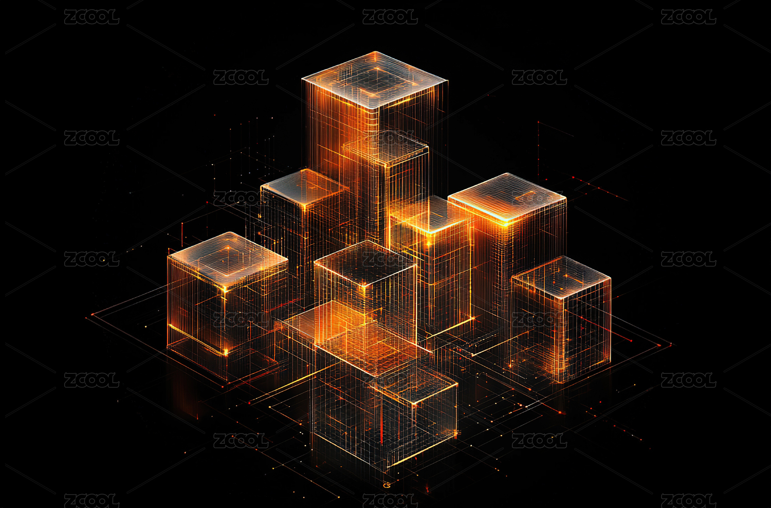 橙黄光芒透明立方体