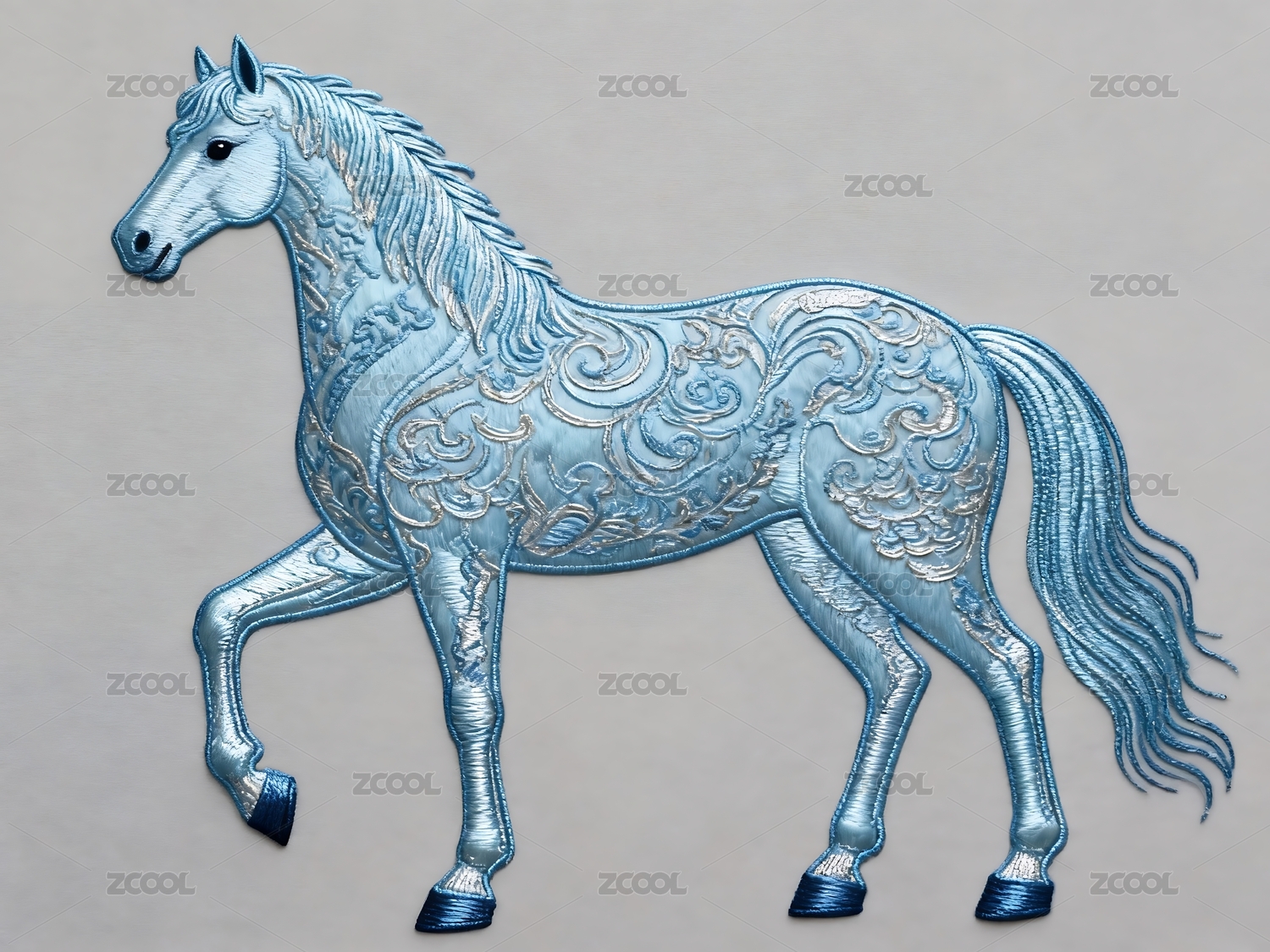 马年,马,骏马,蓝色,银色,花纹,卷草,花卉,马具,精致