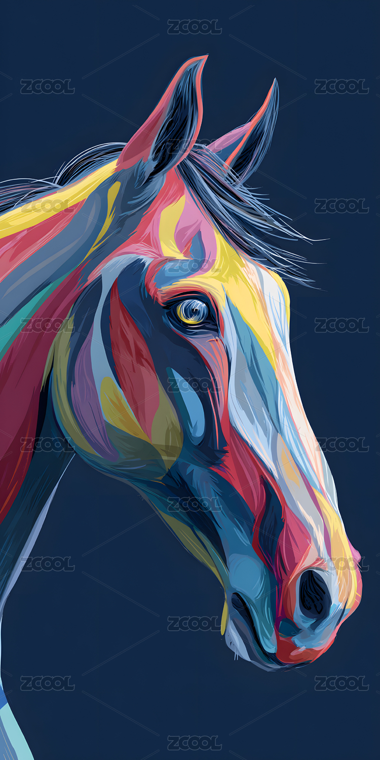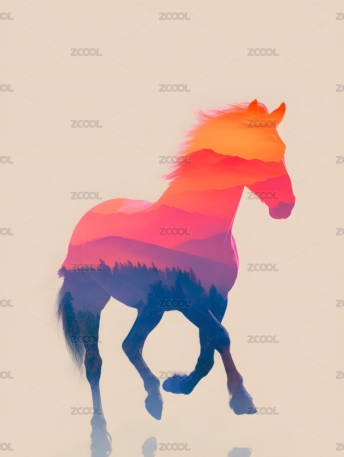 马年,马,极简,红色,骏马,侧影,轮廓,模糊,渐变,腿部