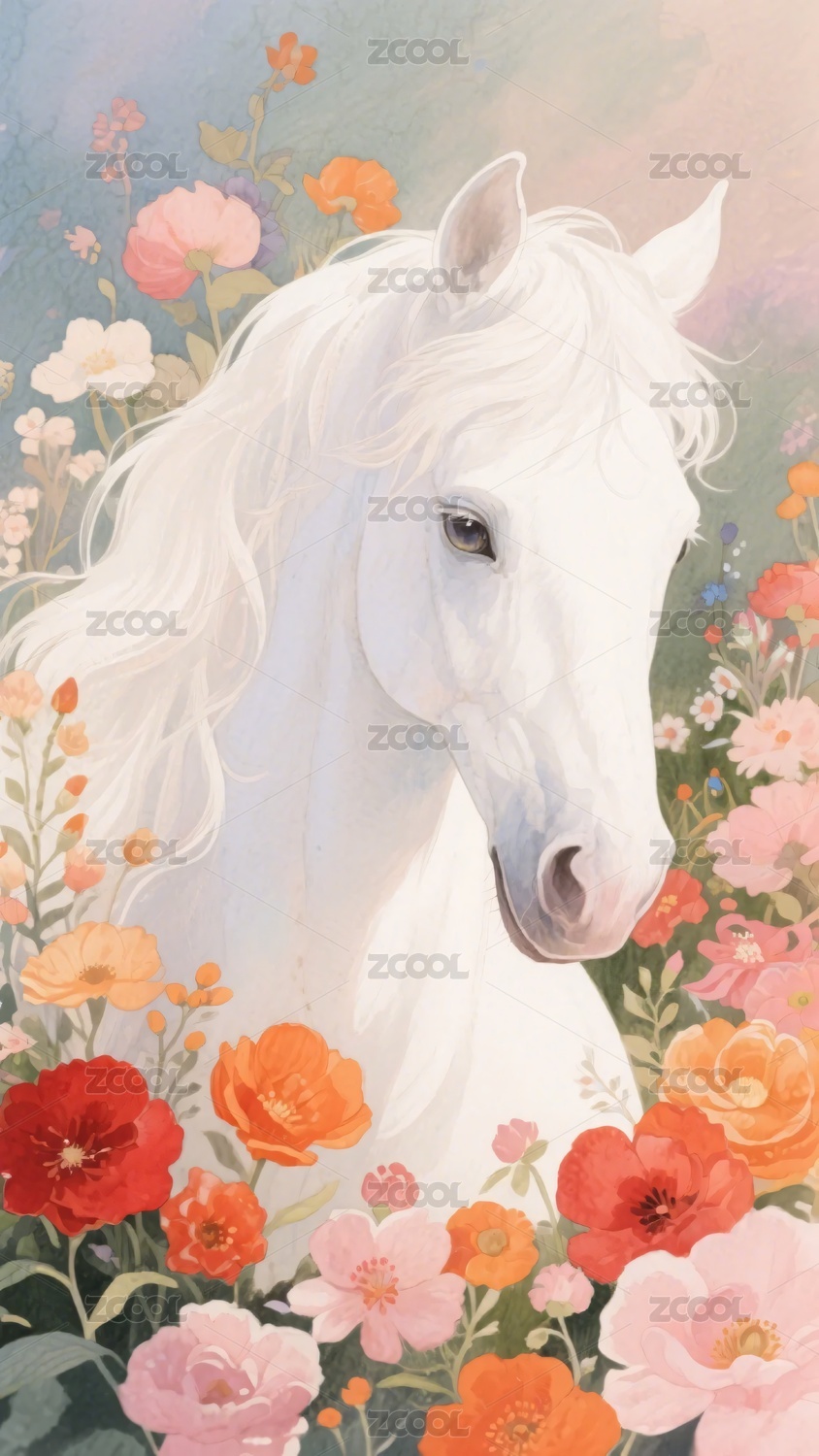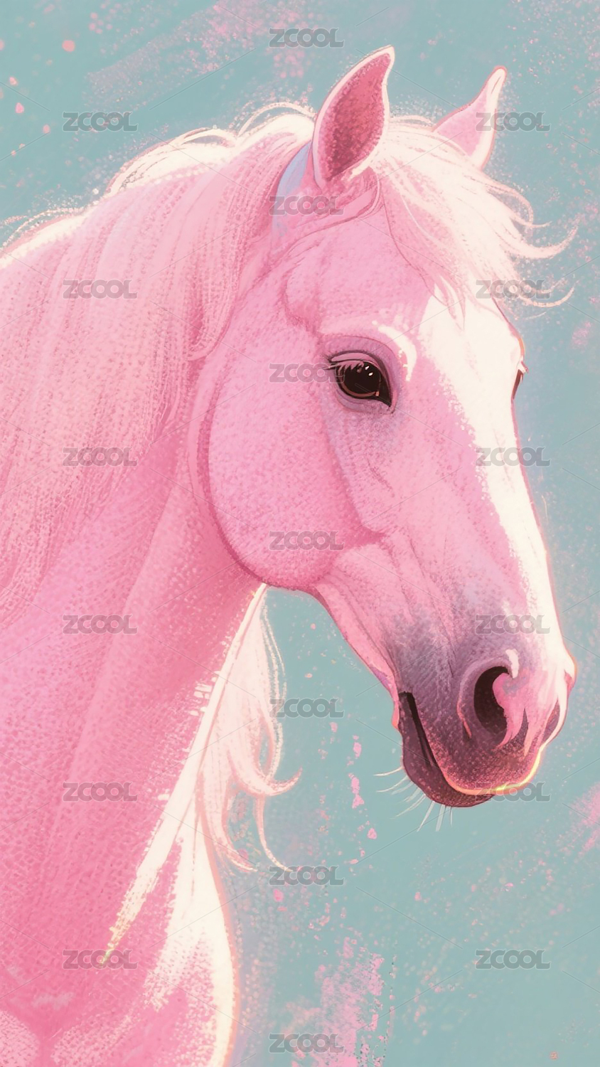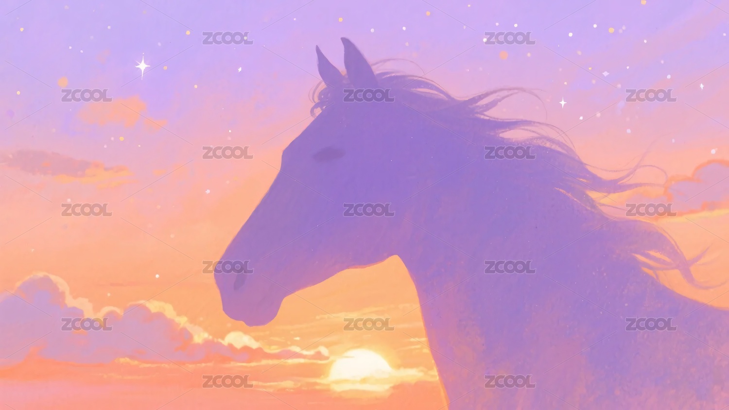 马年,马,梦幻,星空,白马,侧脸,特写,鬃毛,渐变,蓝粉