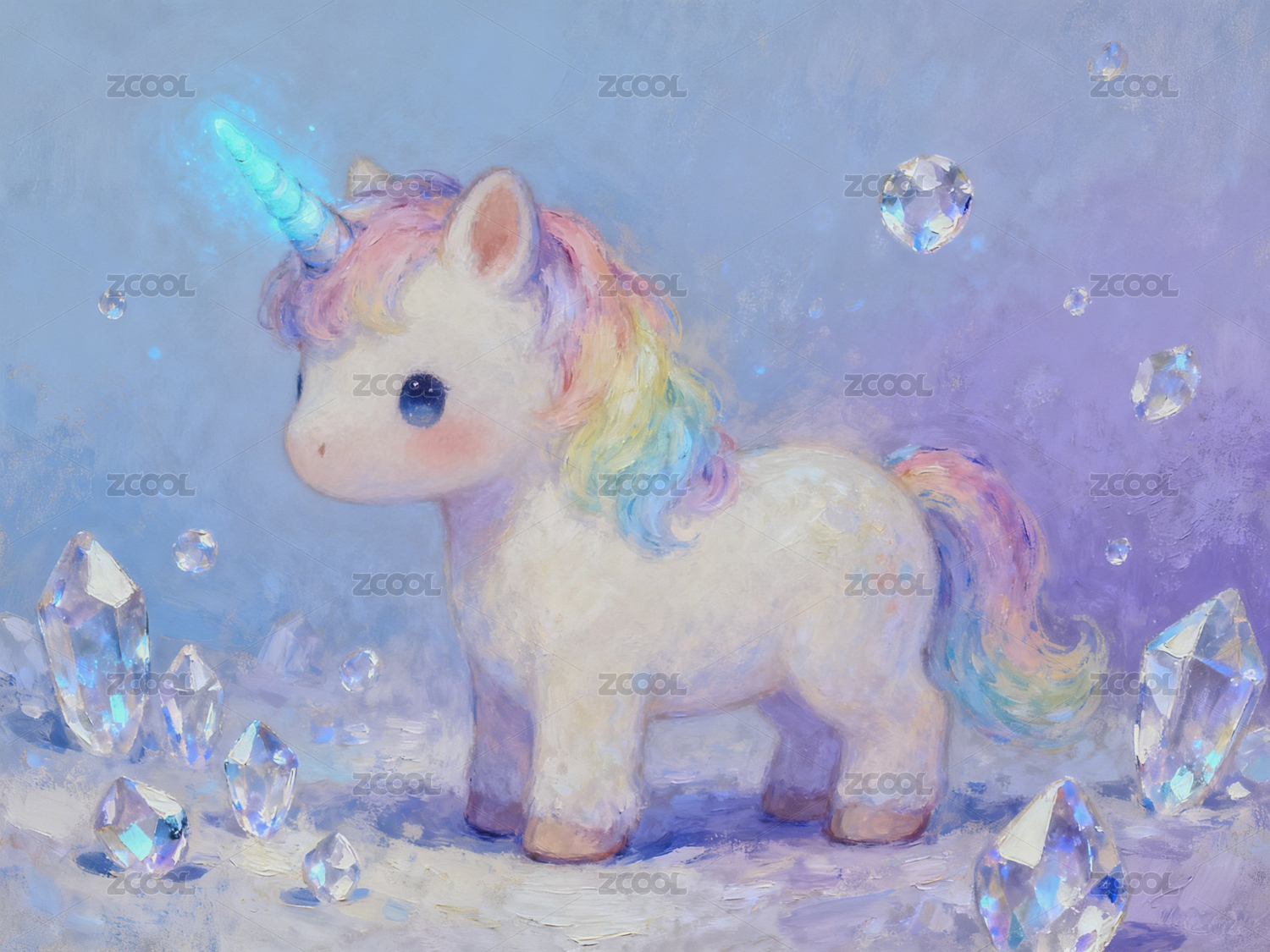 彩虹鬃毛奔跑的梦幻卡通小白马
