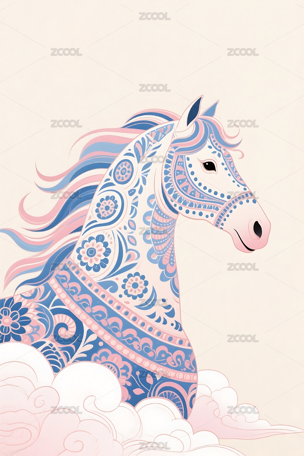 敦煌风格花纹马图案