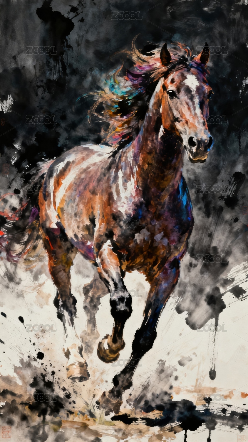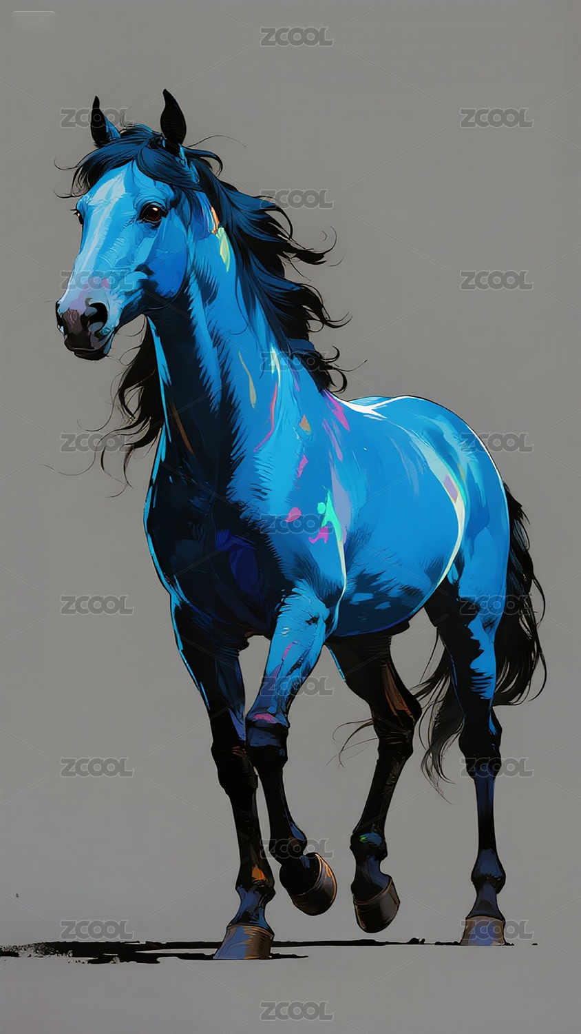 马年,马,骏马,腾跃,蓝色,幻彩,鬃毛,粉色,紫色,黄色
