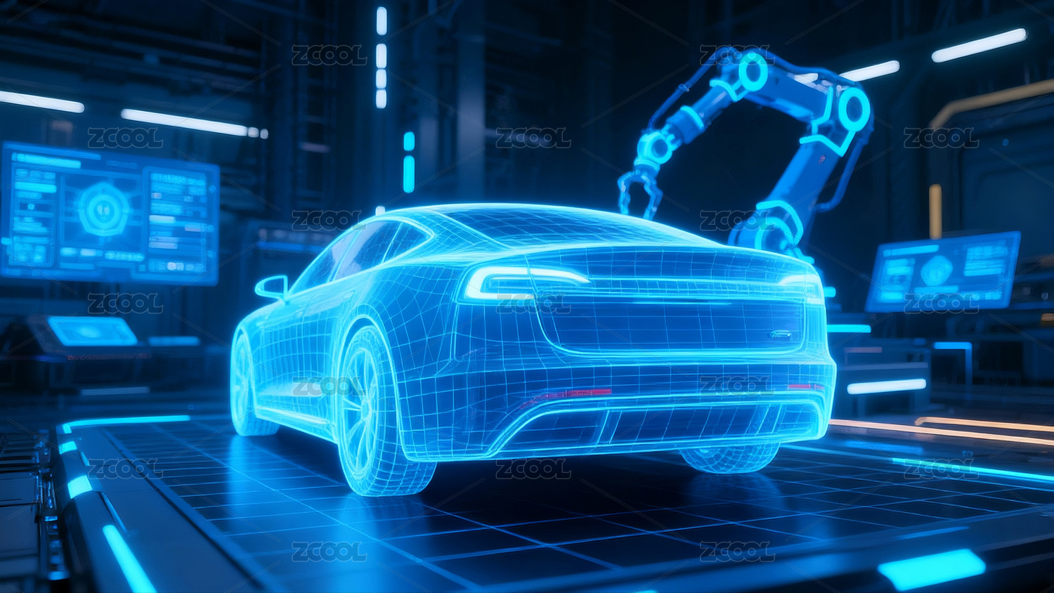汽车,新能源,科技感,车,生产,设计,制造,工业,全息投影,城市