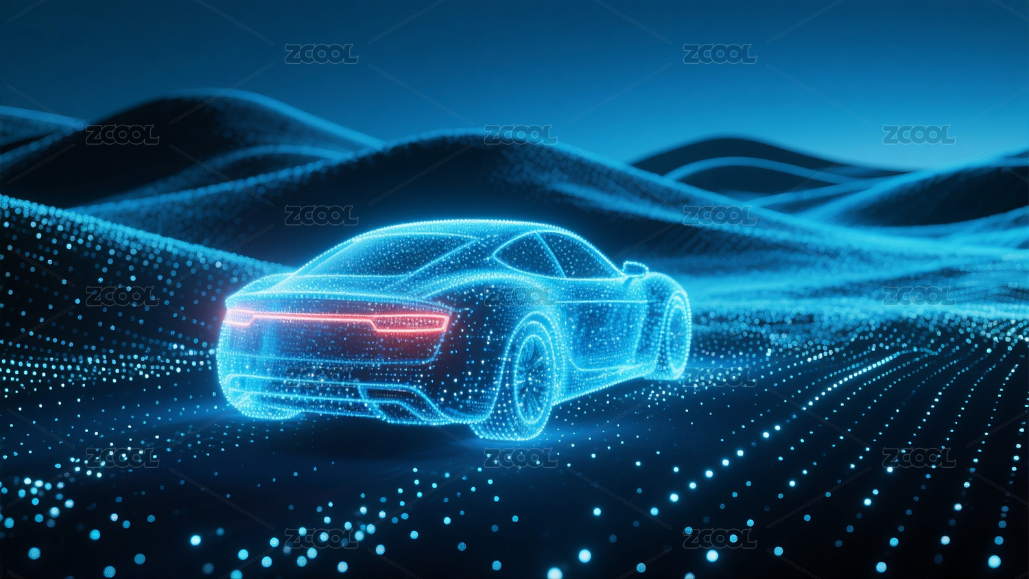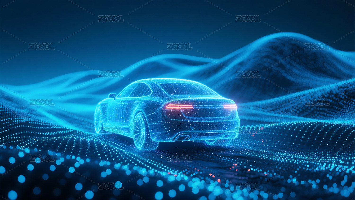 未来感汽车在数字山脉中行驶