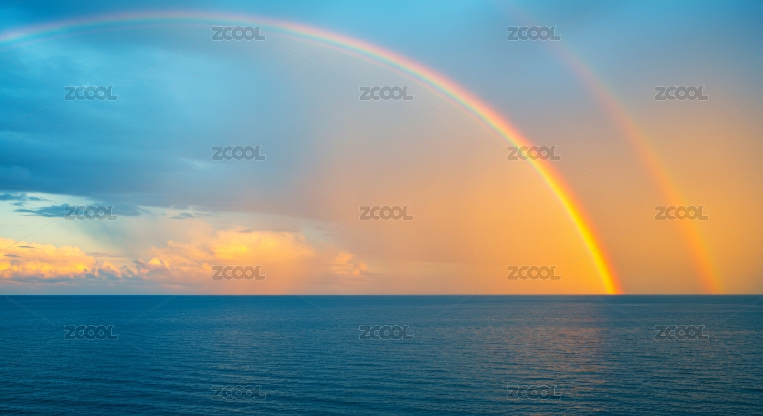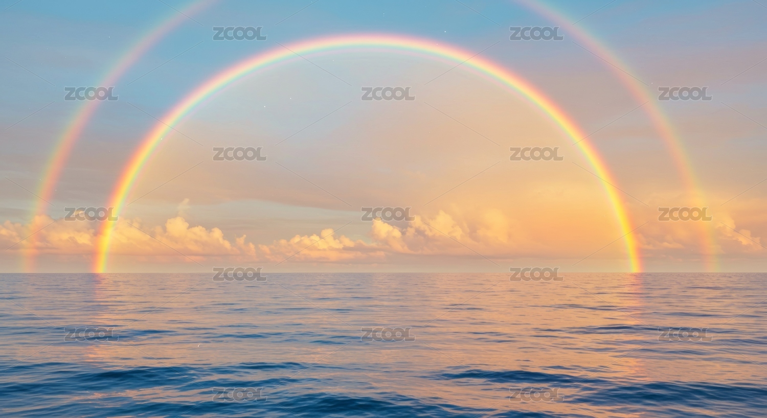 平静海面上彩虹奇观