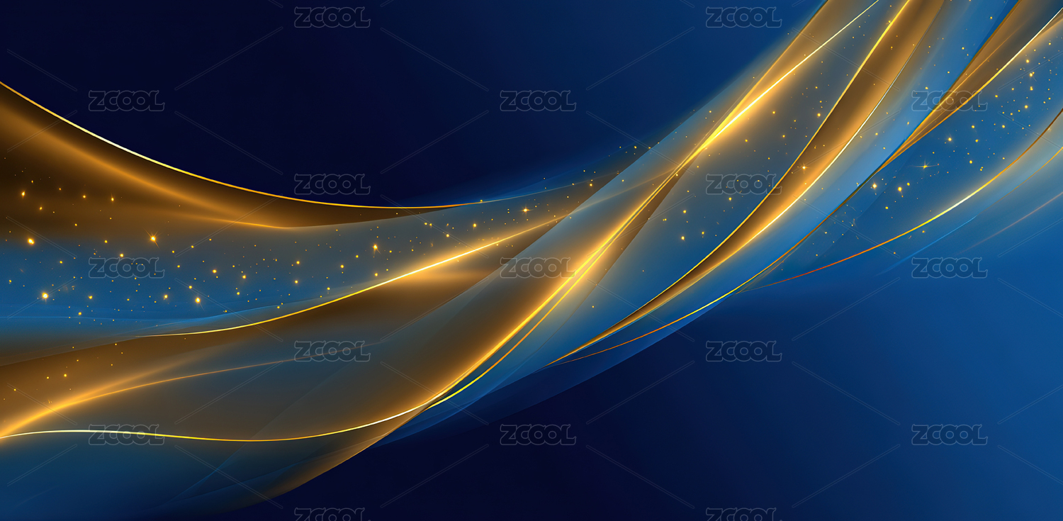 金色波浪与蓝色背景的抽象艺术