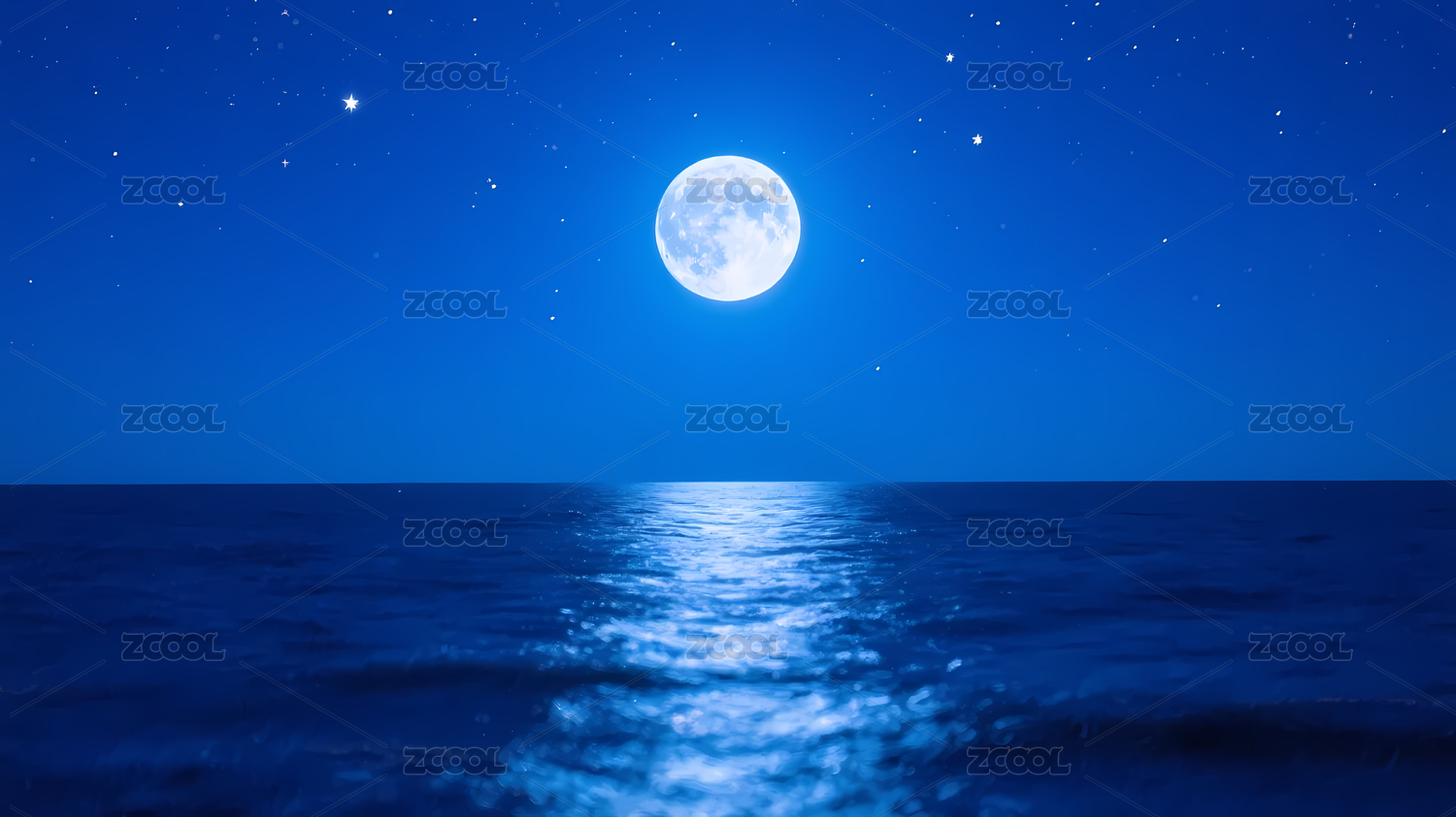 满月海面星空夜景