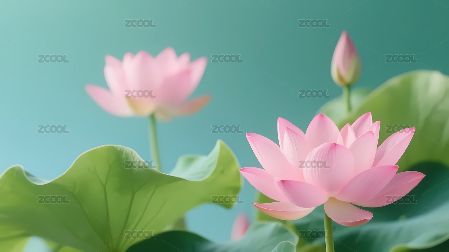 粉白莲花与柔和渐变色
