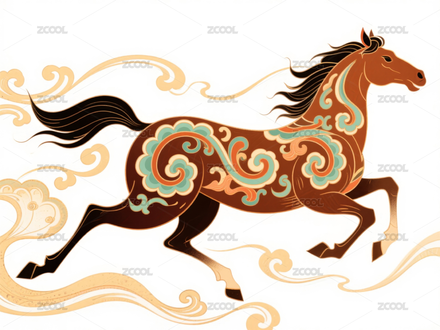 骏马,彩绘,奔跑,云朵,装饰,艺术,传统,文化,动感