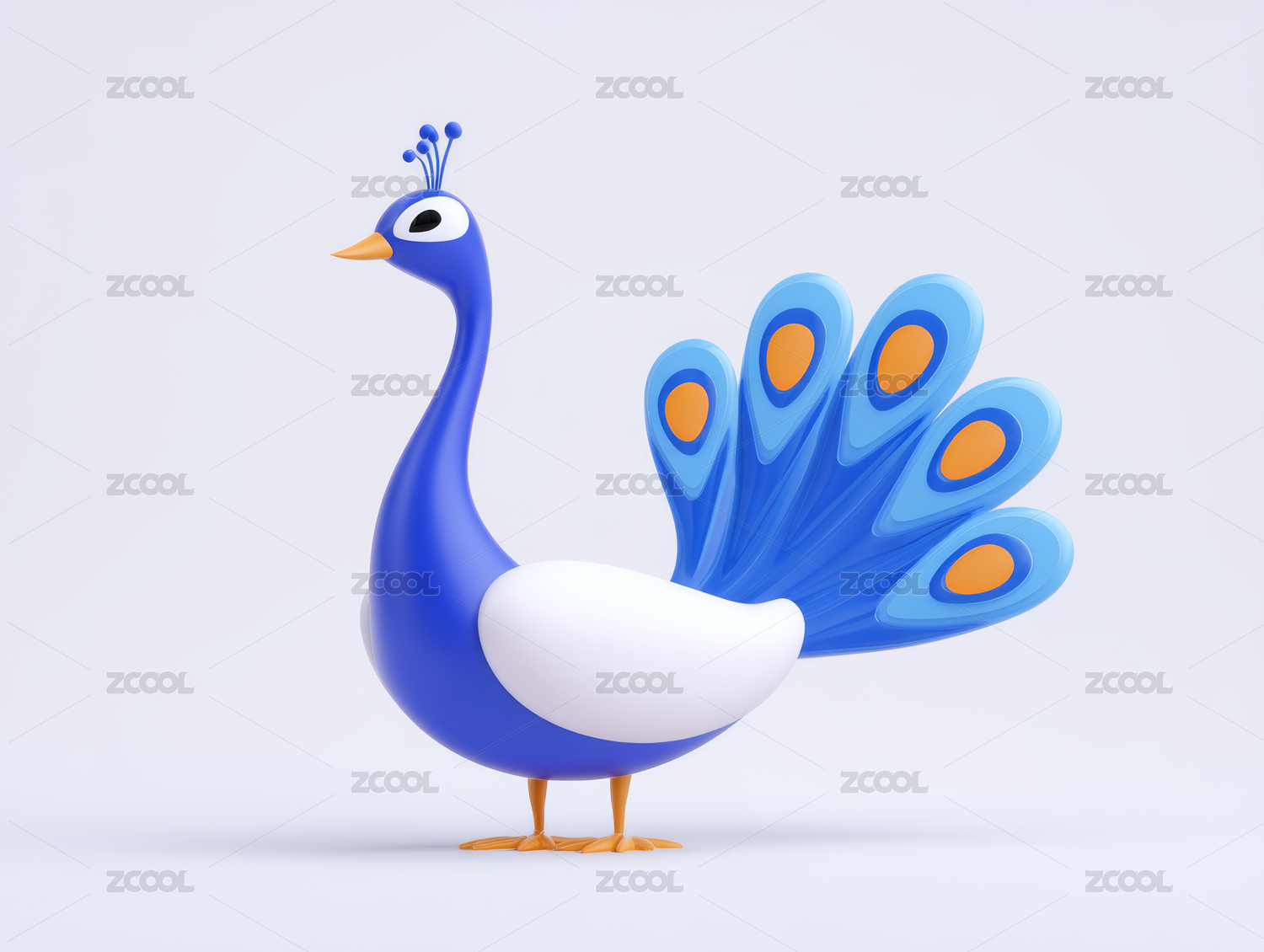 3D ,卡通,动物,可爱,玩具,鸟,蓝色,装饰,孔雀,萌