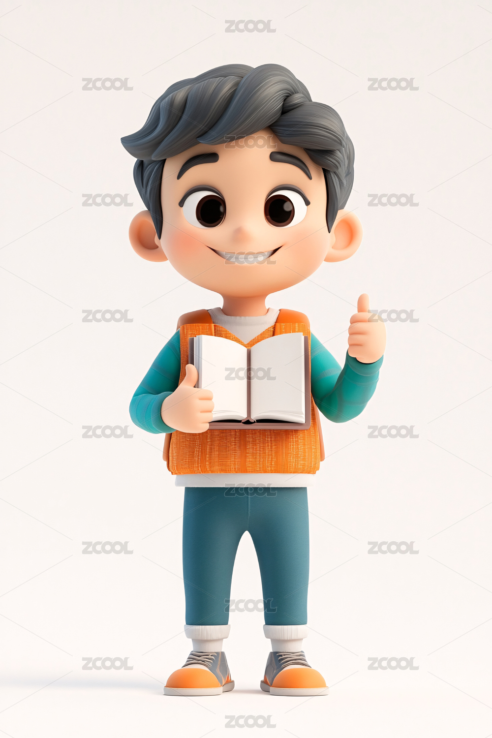 3D,卡通,橙色,人物,鞋子,男孩,打招呼,微笑,外套,立体