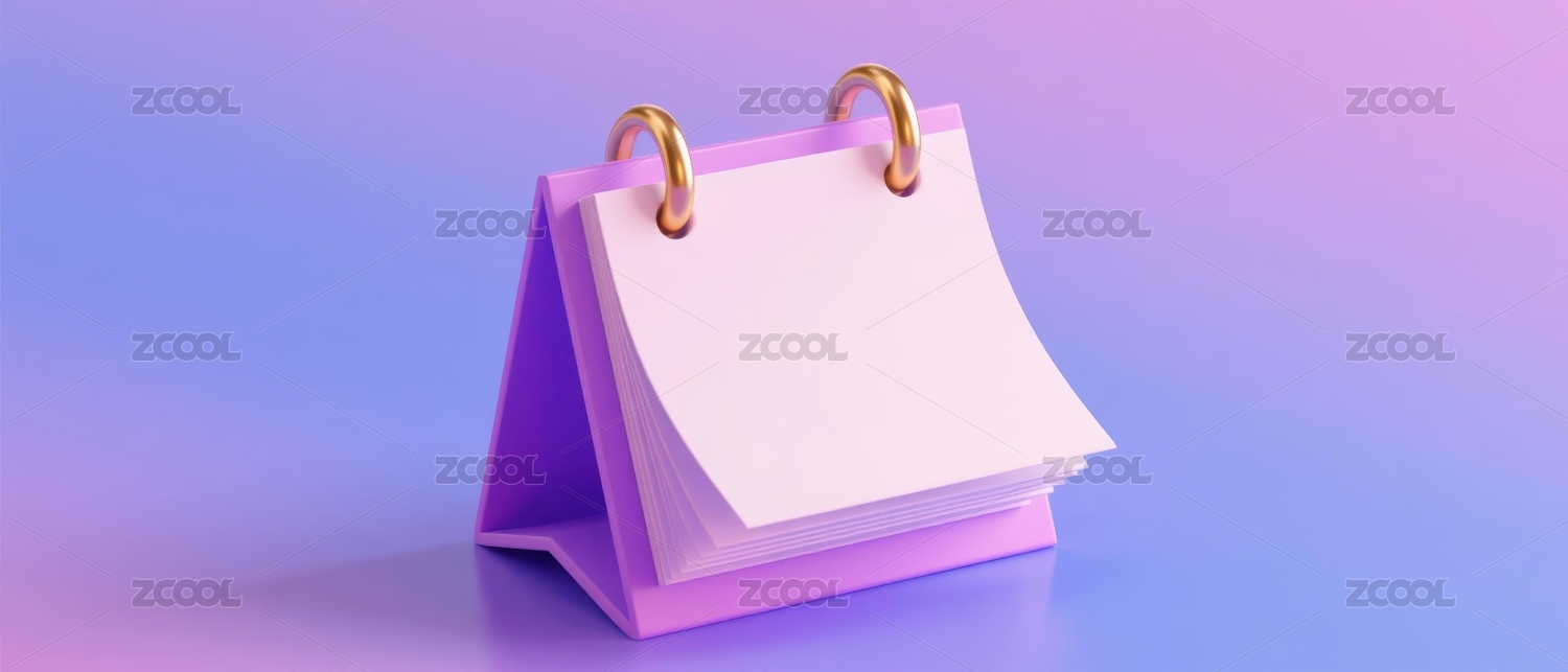 立体台历粉紫调桌面场景