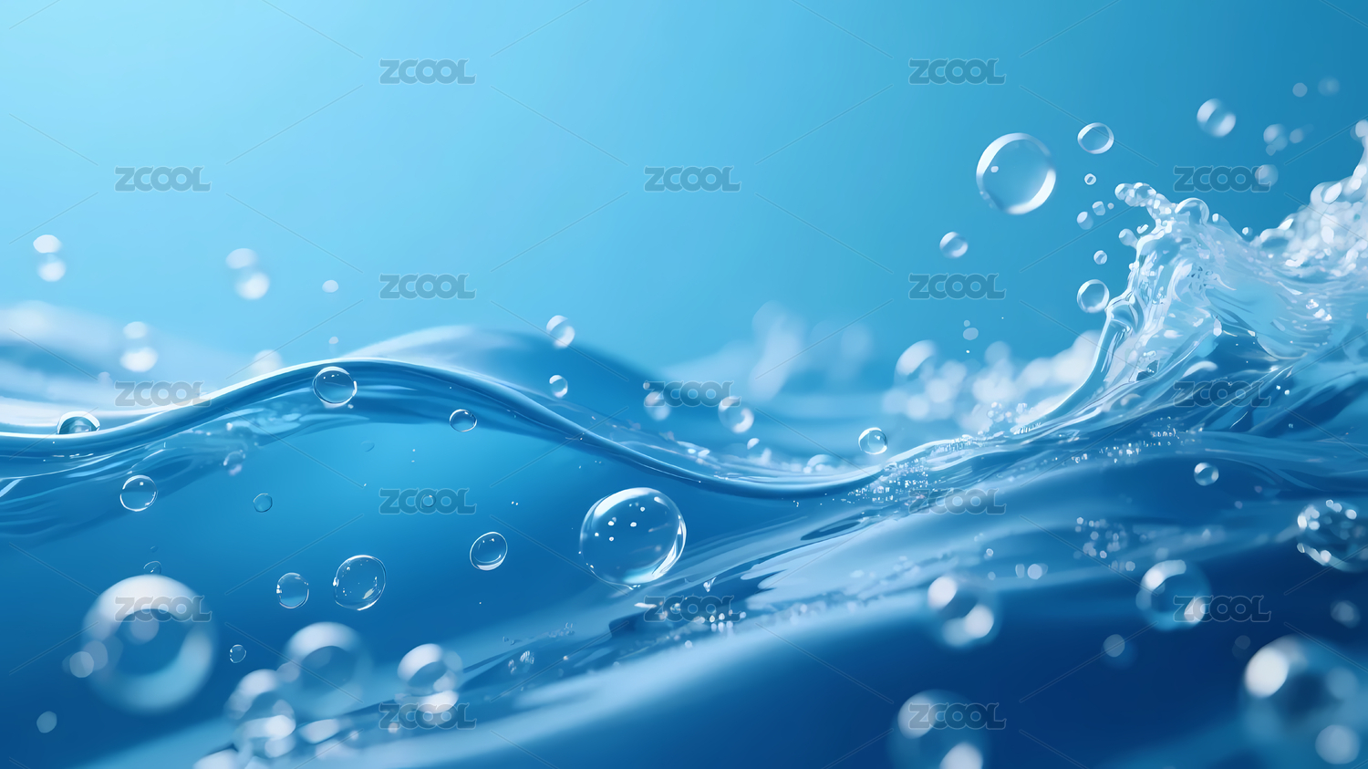 波浪,蓝色,流动,光晕,透明,气泡,深浅,清新,液体,模糊