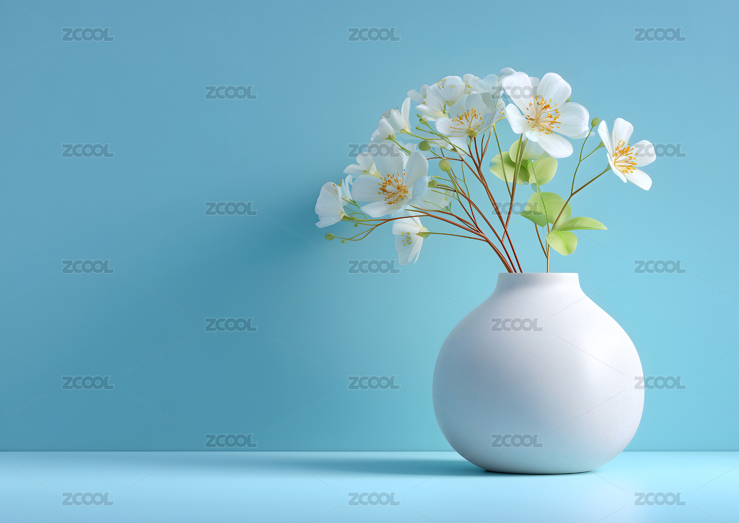 蓝瓶中绽放的素雅白梅