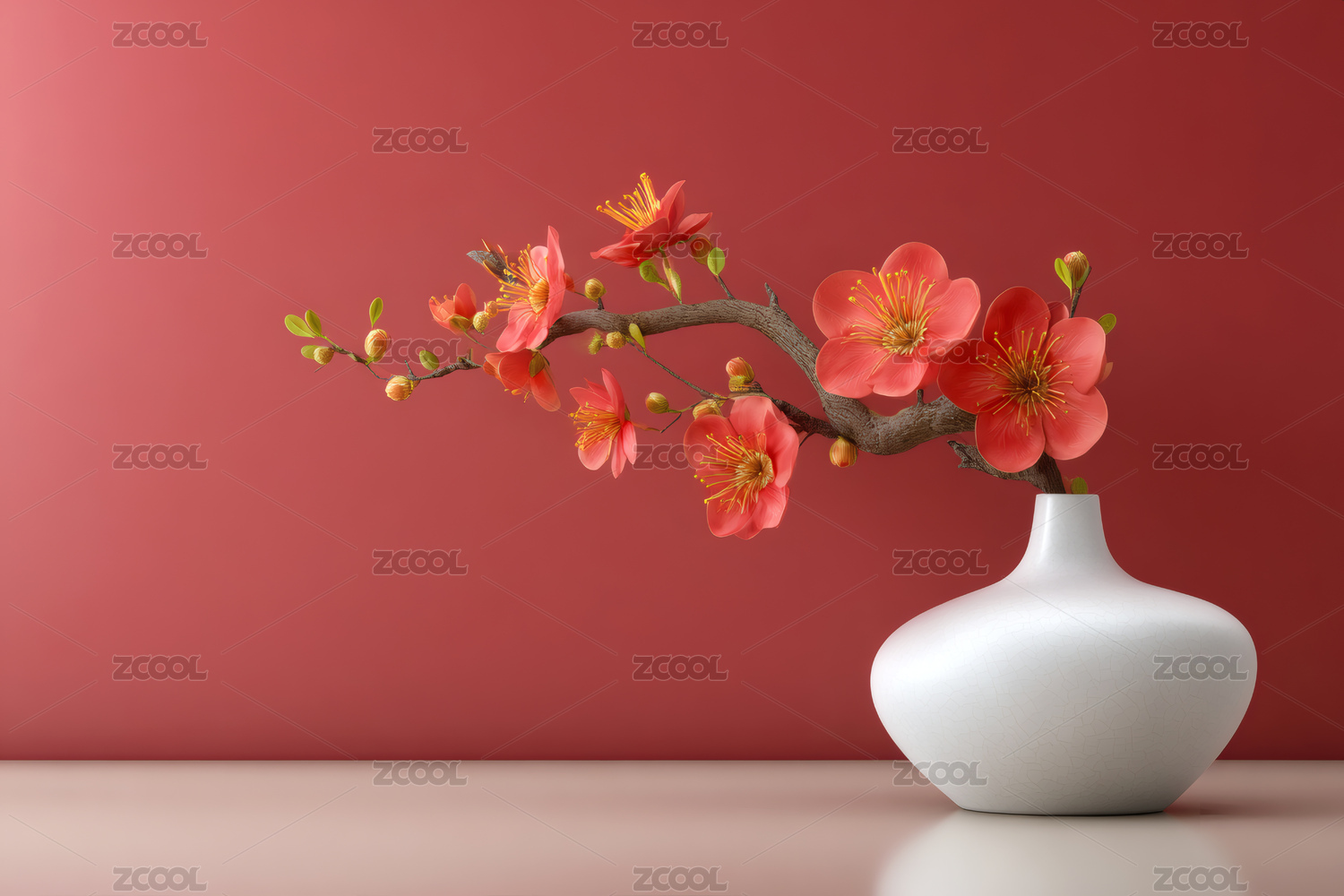 梅花和中式瓷器场景