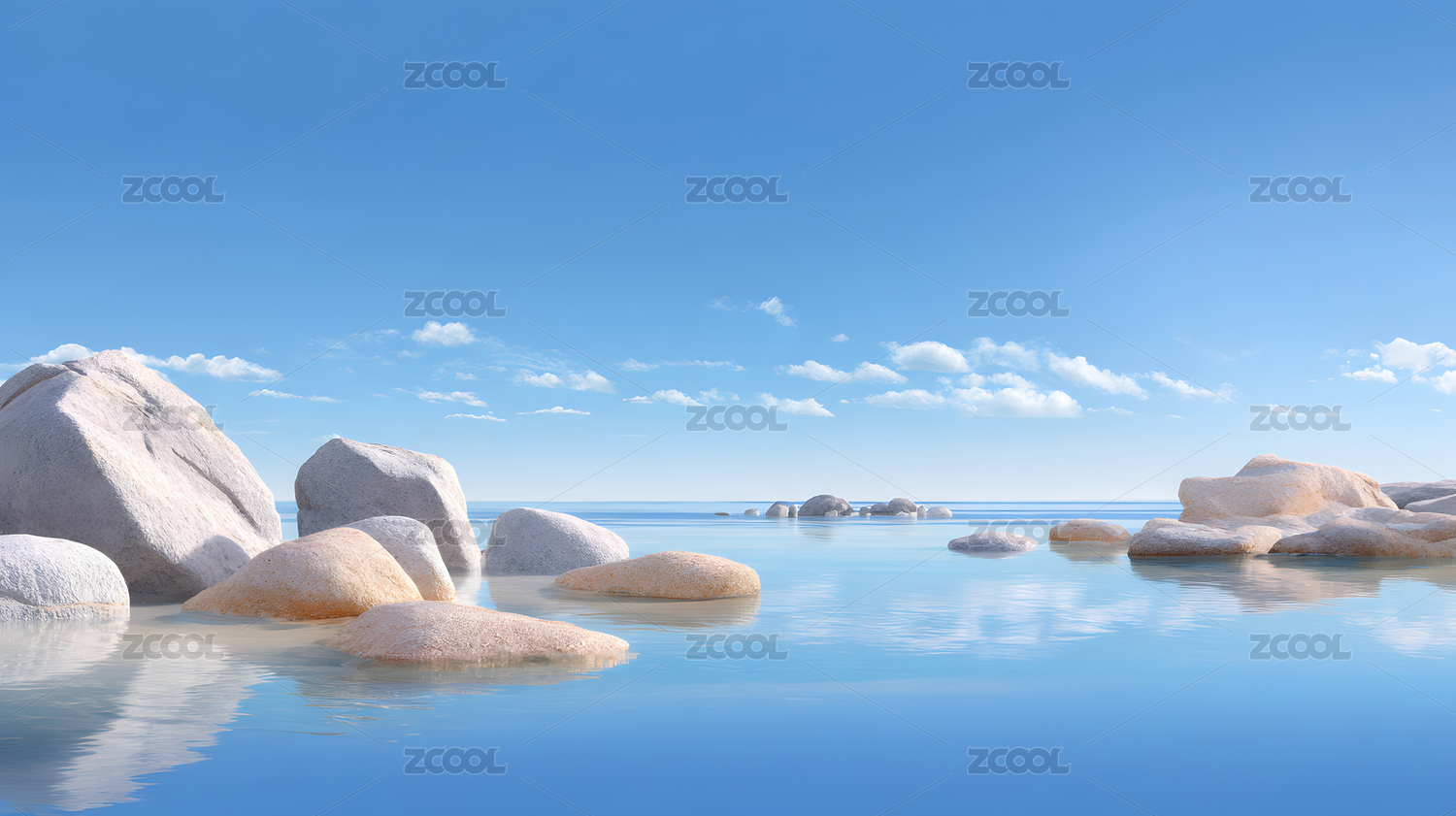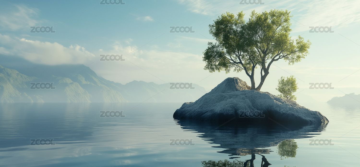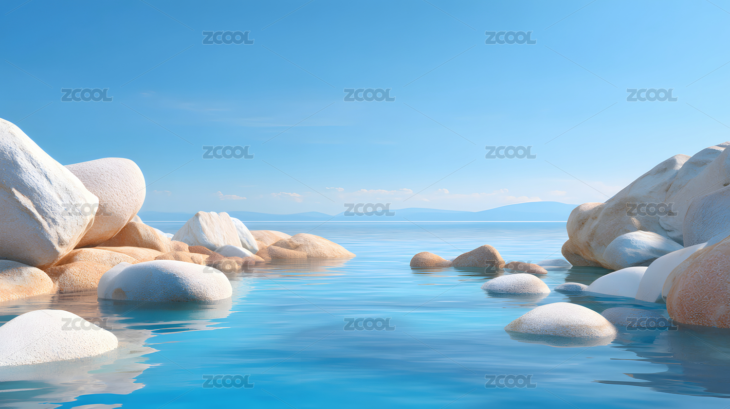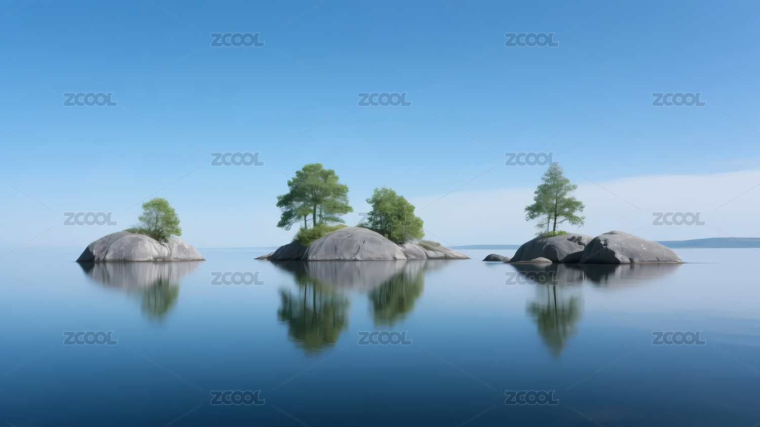 蓝色,水面,自然,宁静,天空,树木,岩石,绿色,漂浮,和谐