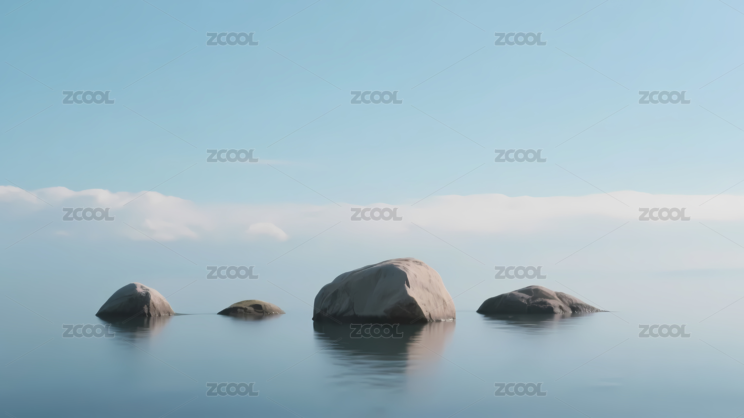 自然,清新,平静,树木,岩石,绿色,蓝天,湖泊,风景,生态