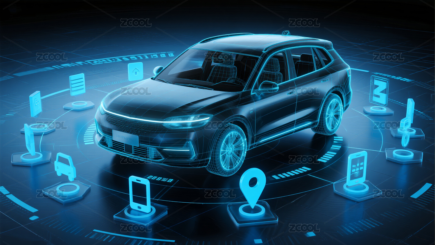 汽车,自动驾驶,新能源,电车,交通工具,科技,蓝色,虚拟,图标,装置