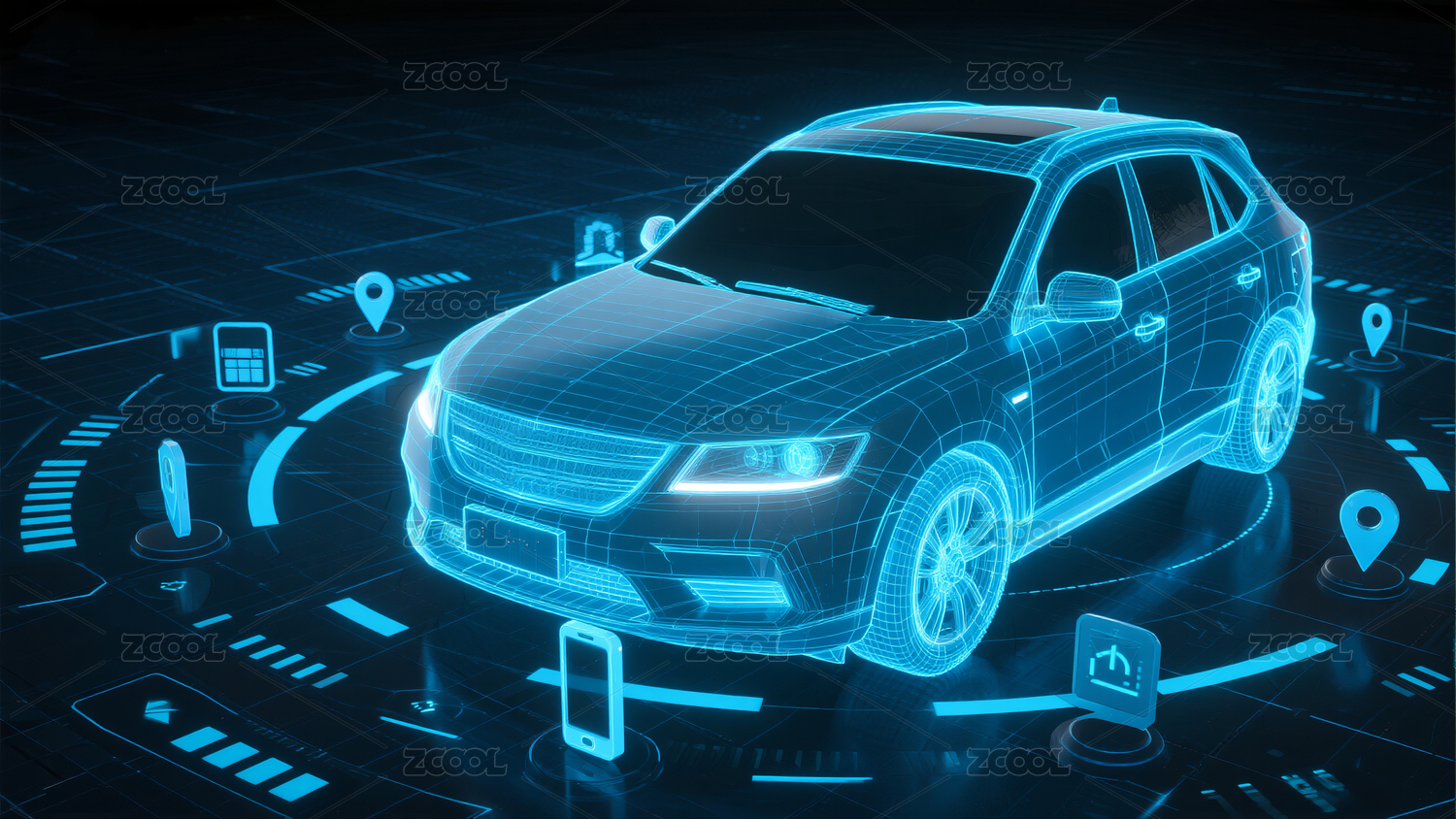 汽车,自动驾驶,新能源,电车,交通工具,科技,蓝色,虚拟,图标,装置