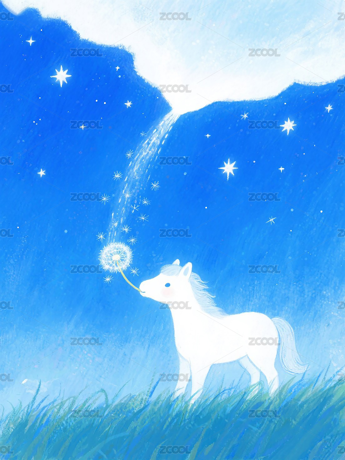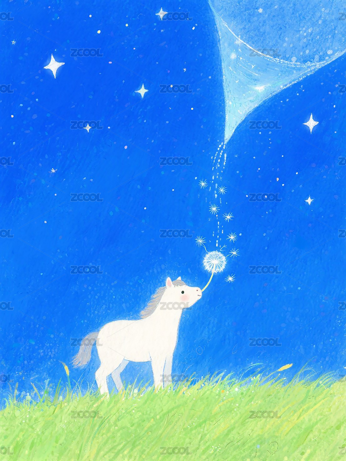 马年,马,小马,白马,幼驹,蒲公英,绒球,吹散,星云,彩虹