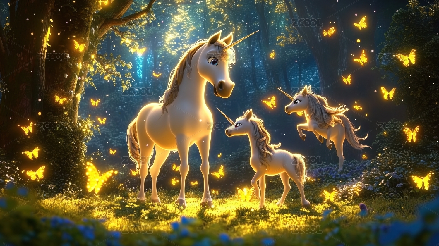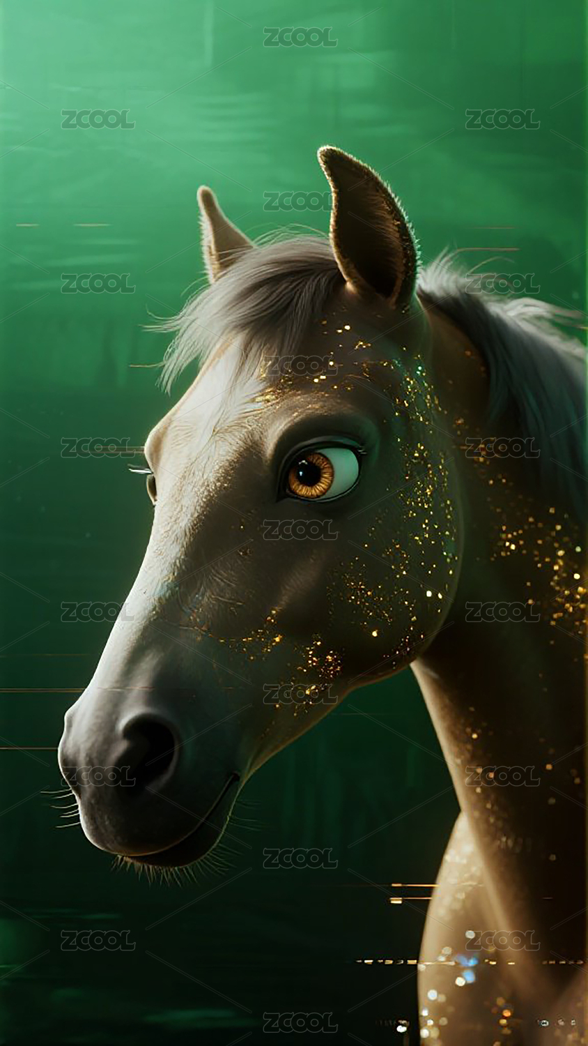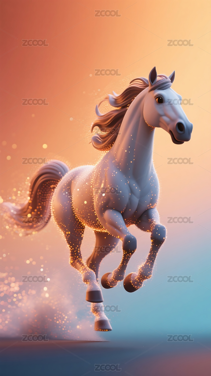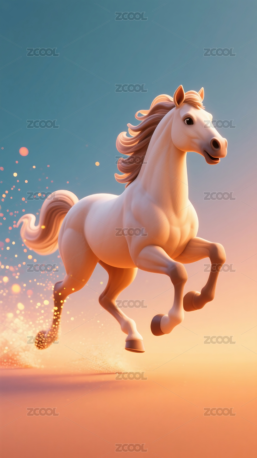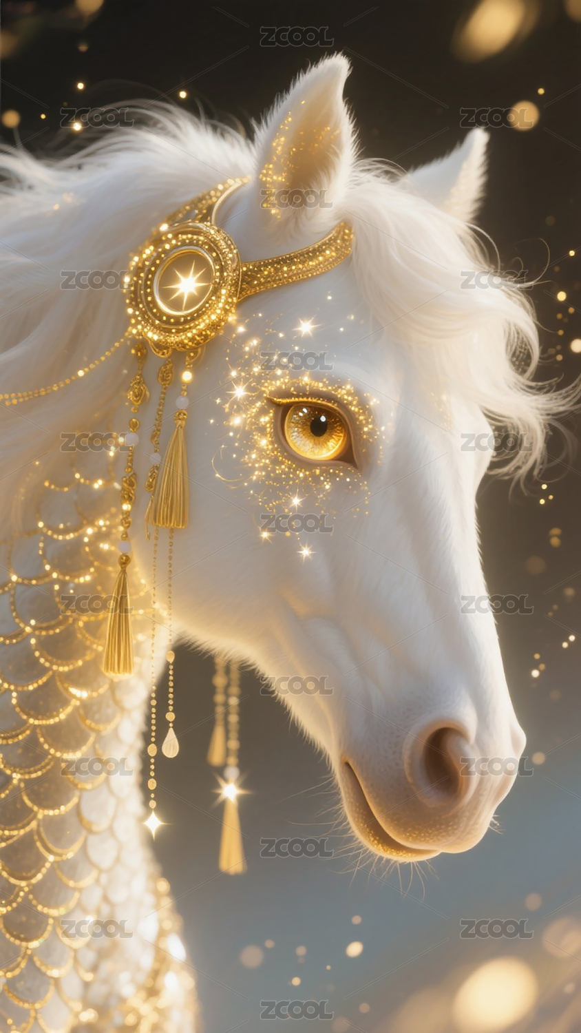 马年,马,生肖,动物,独角兽,羽毛,蓝色,梦幻,神秘,白色