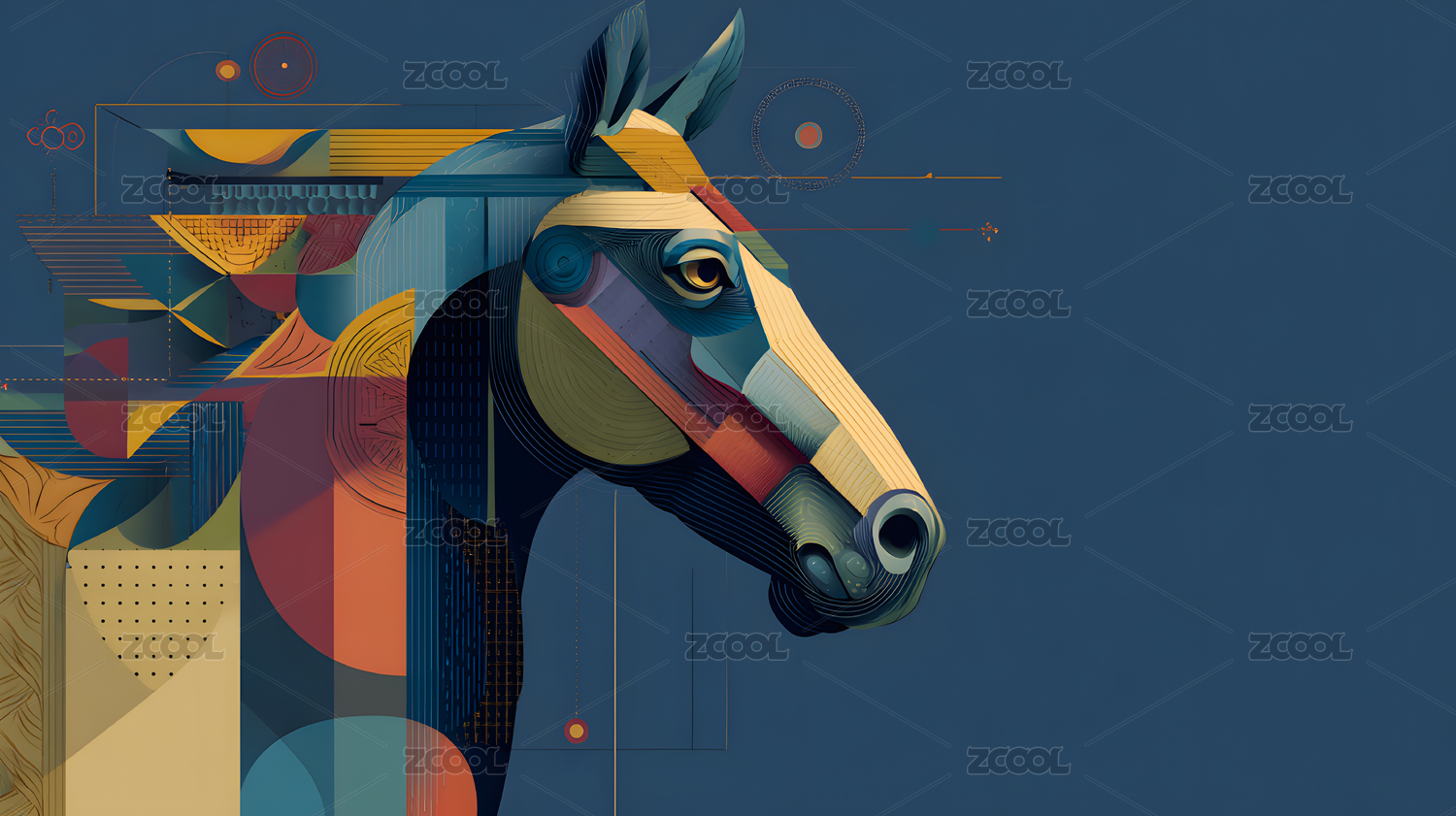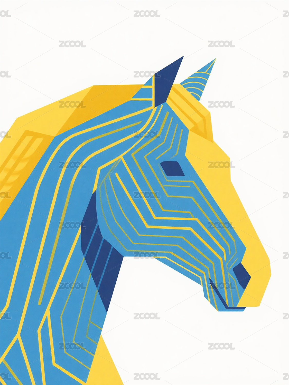 马年,马,生肖,动物,抽象,几何,线条,块面,马头,颈部
