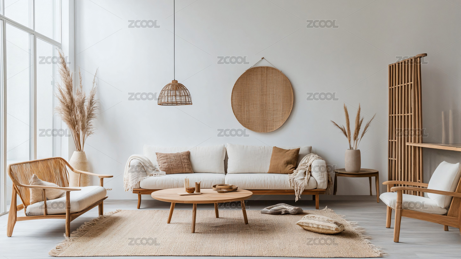 粗麻布家居沙发地毯等摆设的客厅空场景