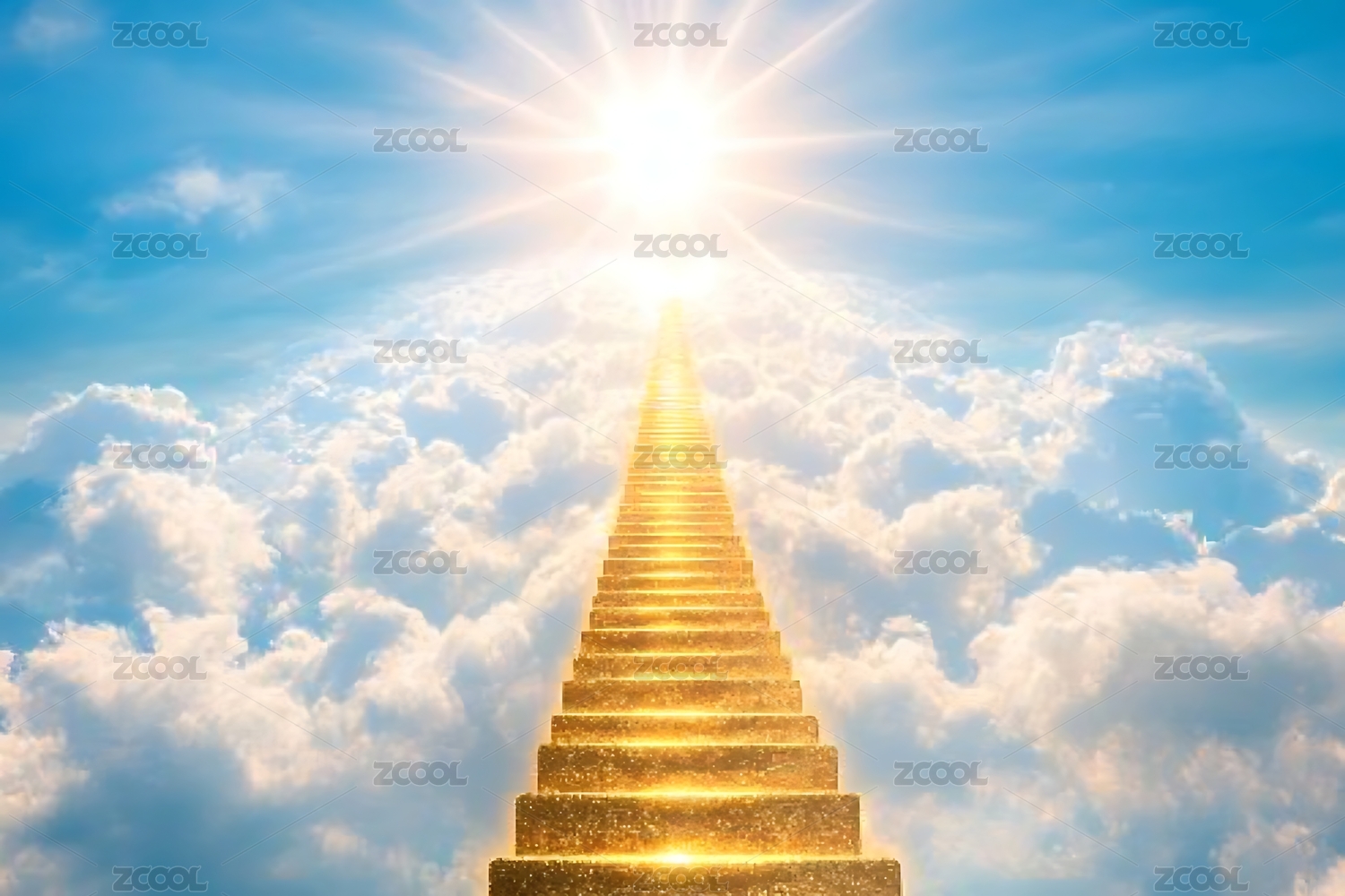 阶梯, 云朵, 太阳, 光芒, 天堂
