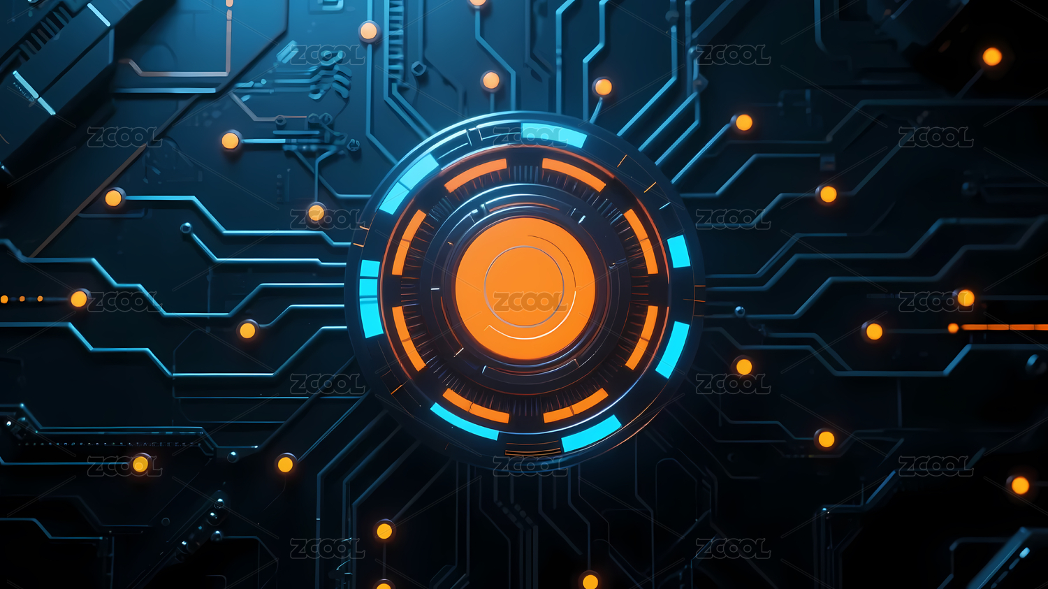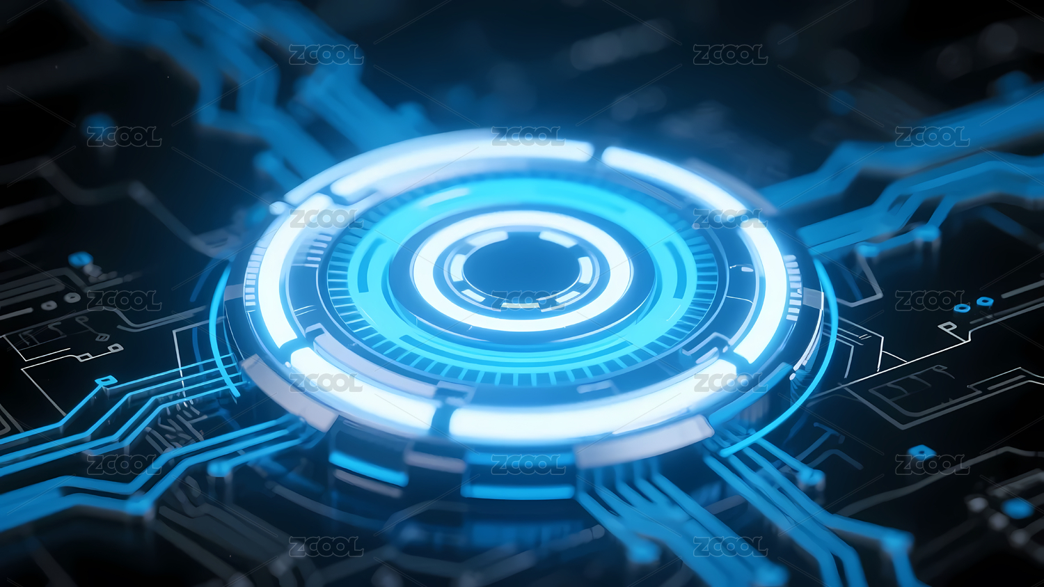 科技感电路板与蓝色光环