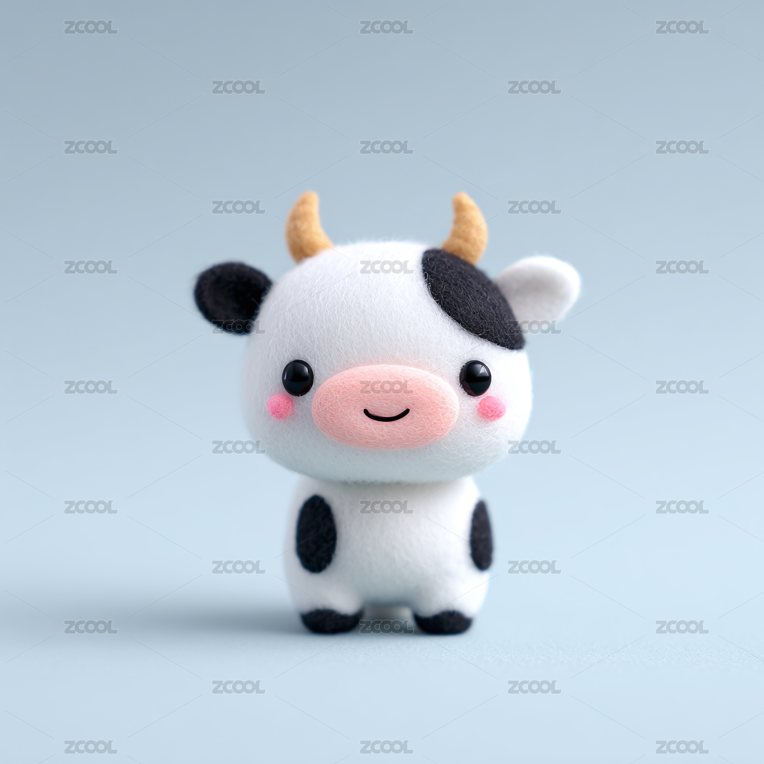 3D建模羊毛毡毛绒绒质感奶牛模型
