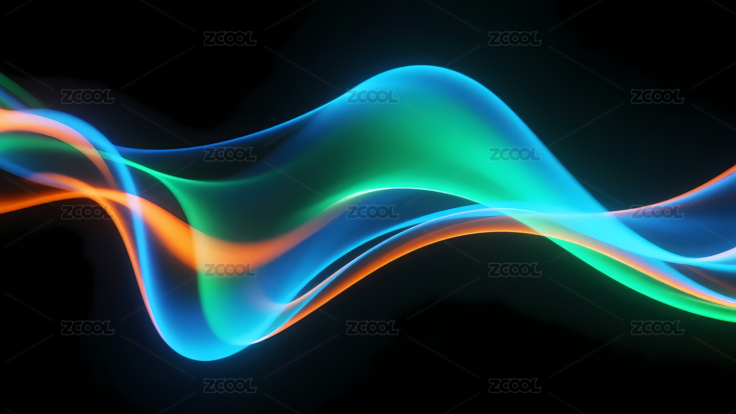 蓝绿色渐变波浪与深色背景