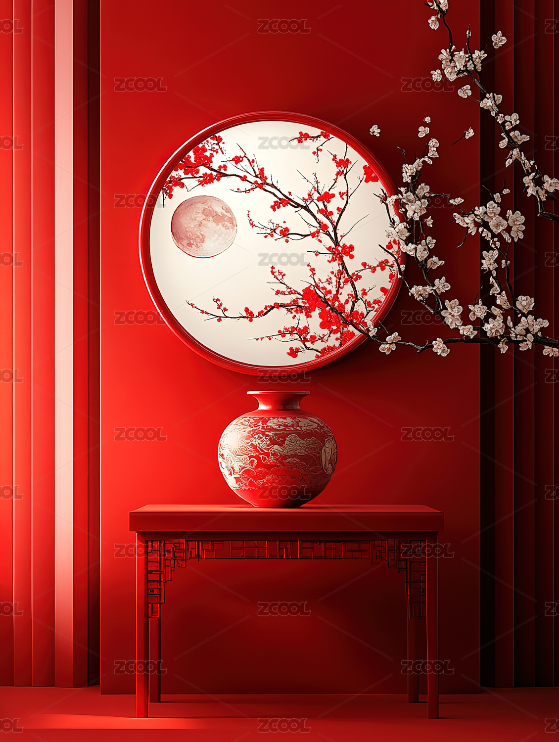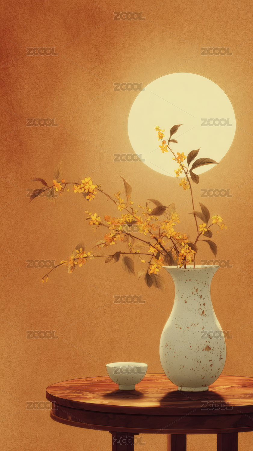 中秋中式桂花花瓶满月静物画面节日营销网页