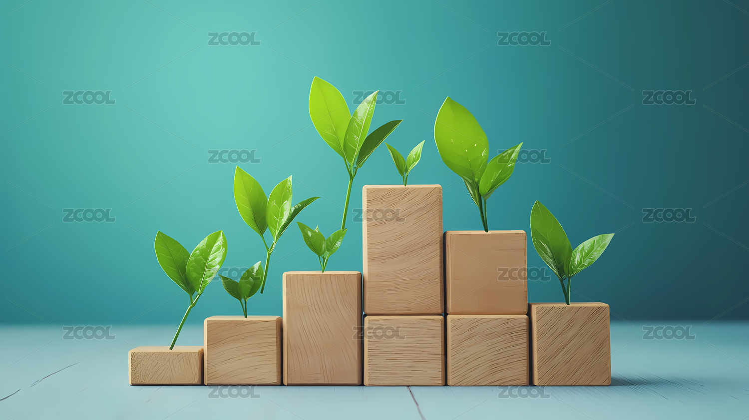 木块与小植物生长环保主题