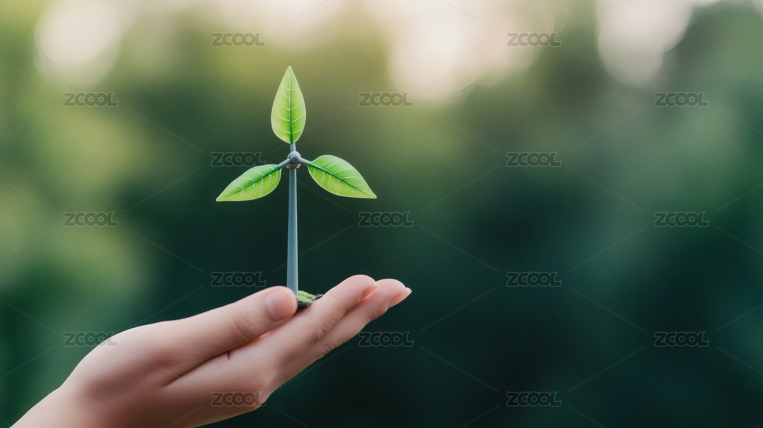 手托叶片状风车象征绿色能源