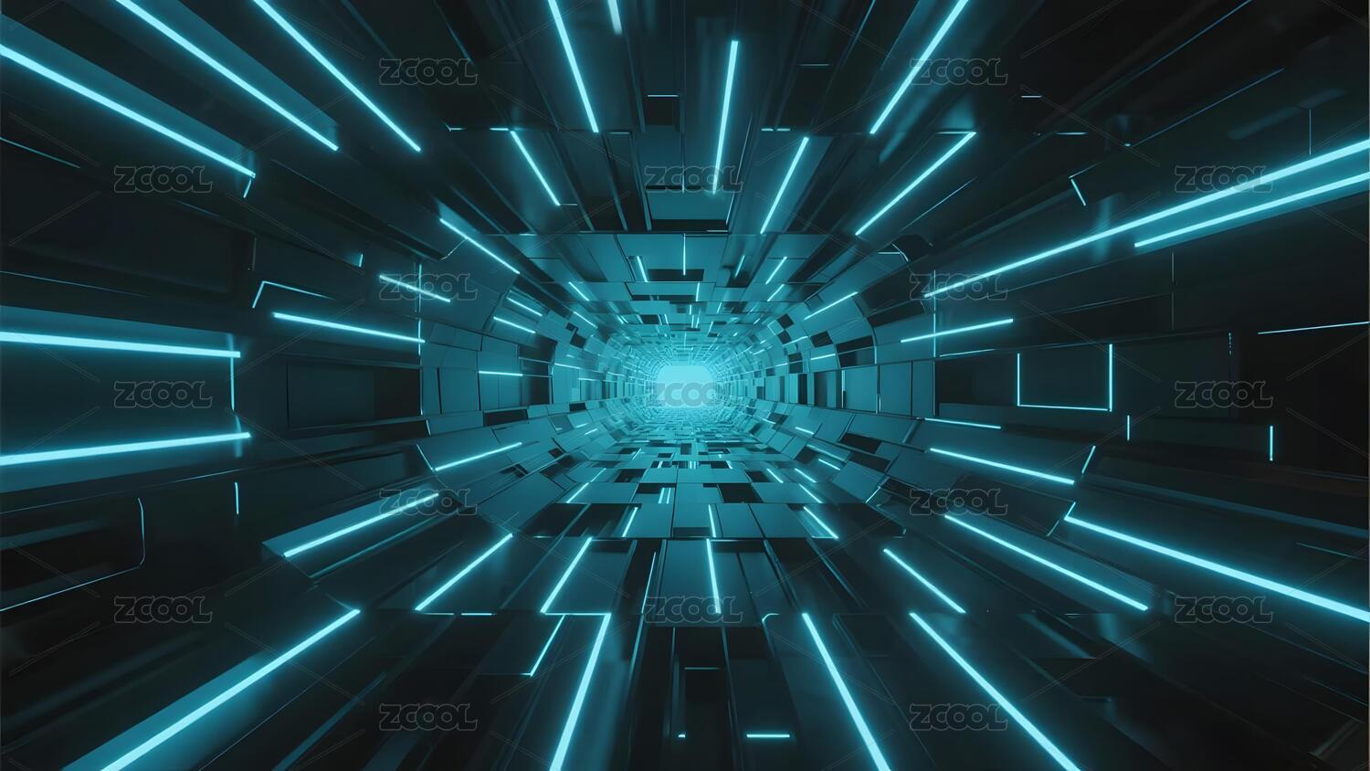 蓝黑方块隧道发光线条