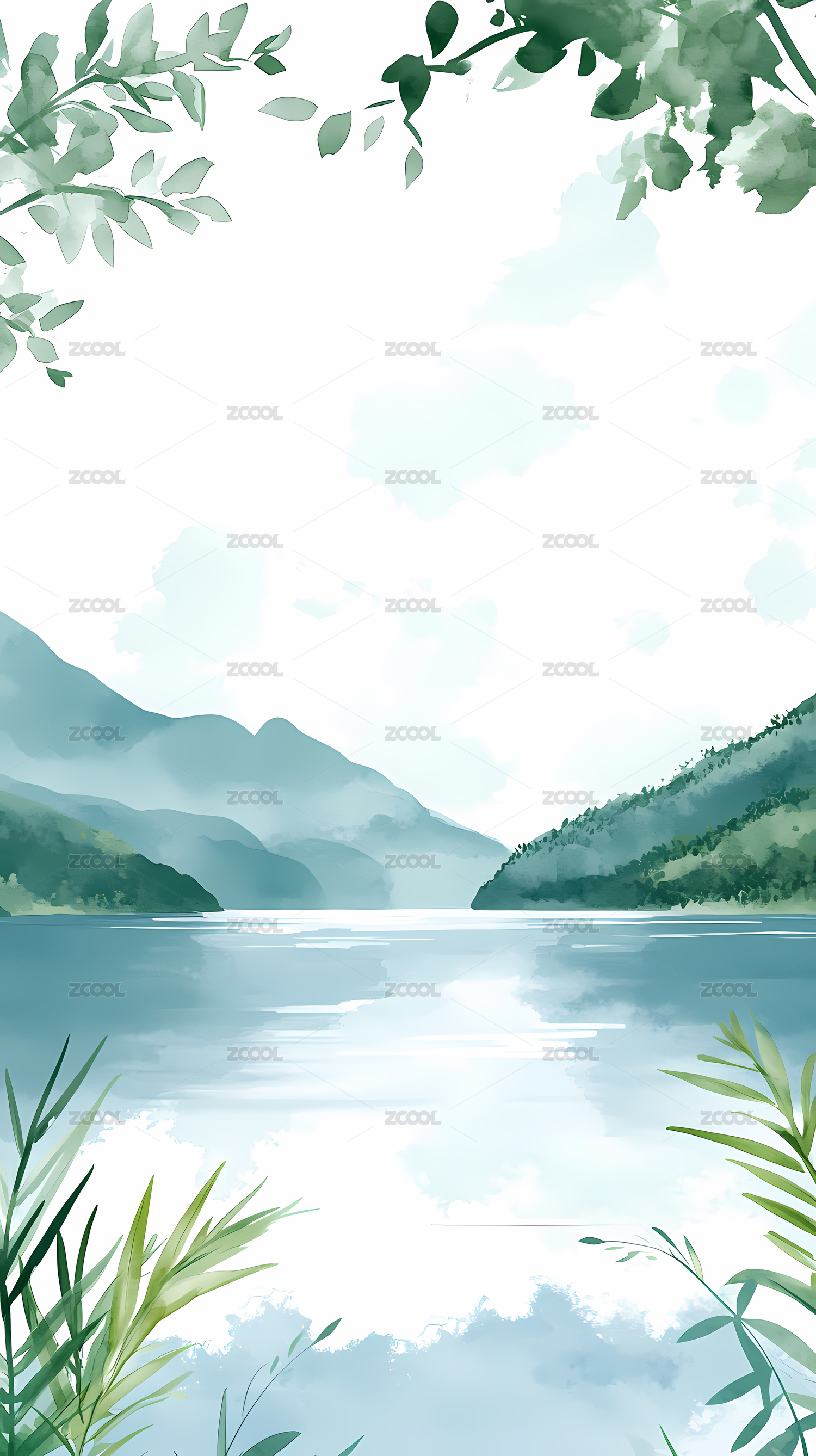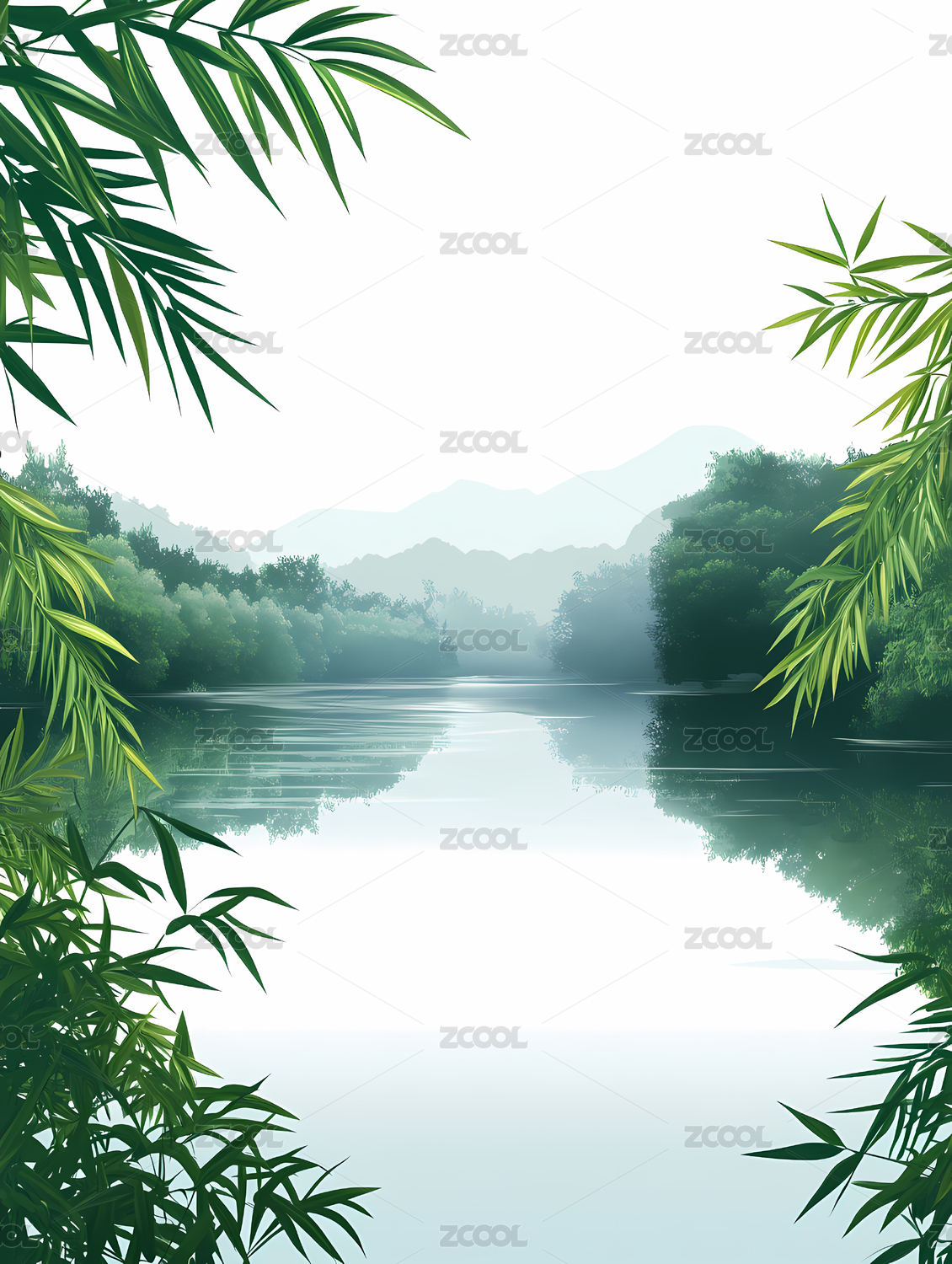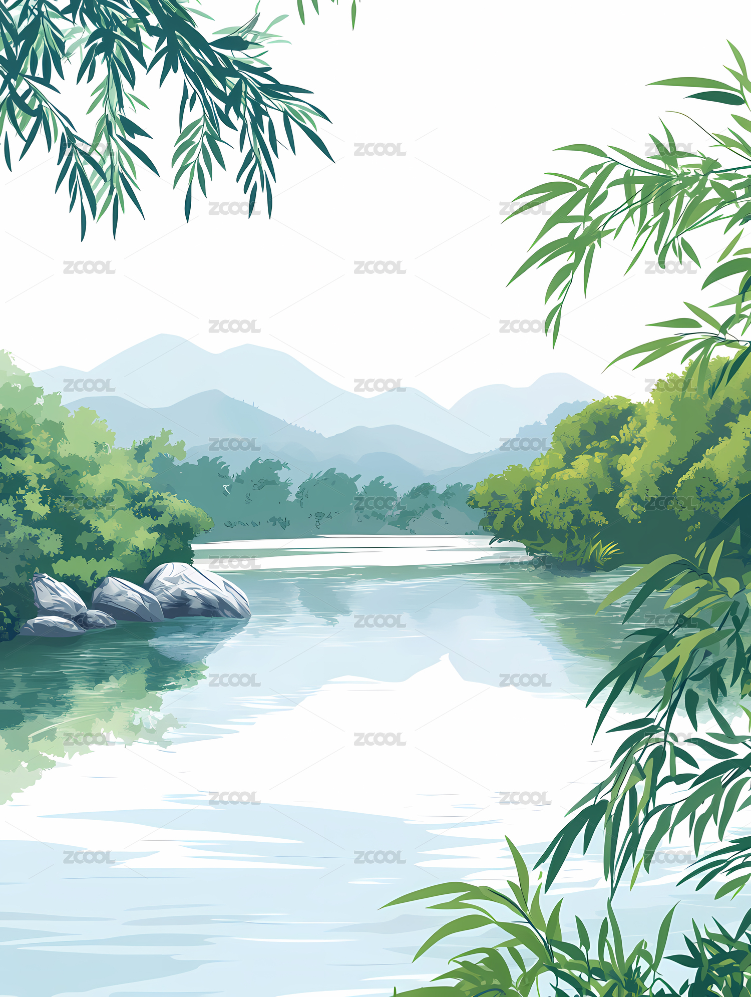宁静,风景,山谷,绘画,河流,山脉,自然,艺术,插图,植物