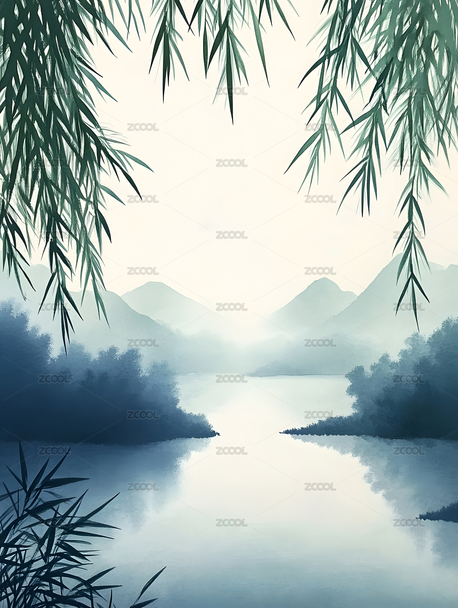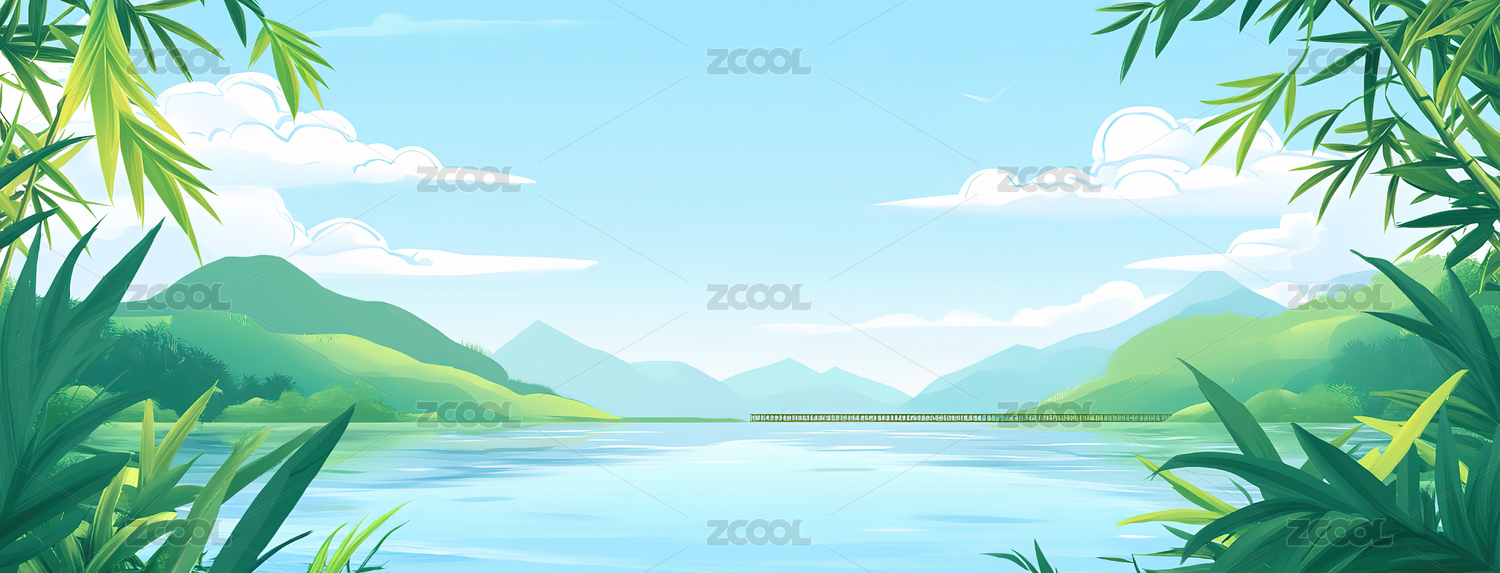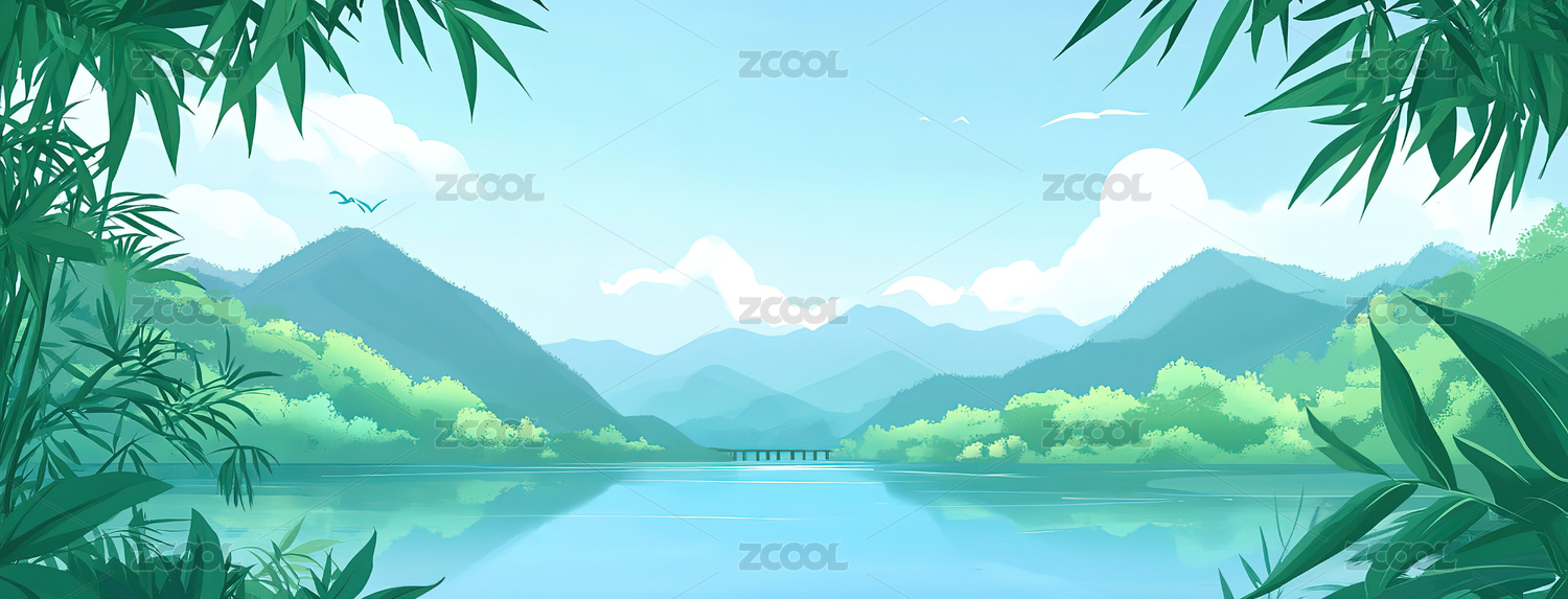 宁静,风景,山谷,绘画,河流,山脉,自然,艺术,插图,植物