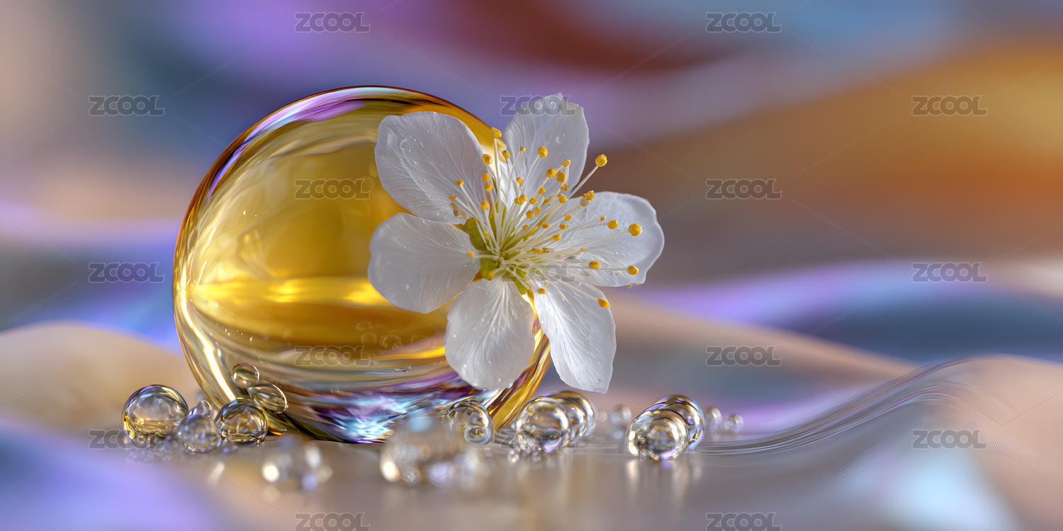 水珠,倒影,水晶球,百合花,莲叶,浪漫,唯美,清新,梦幻,特写