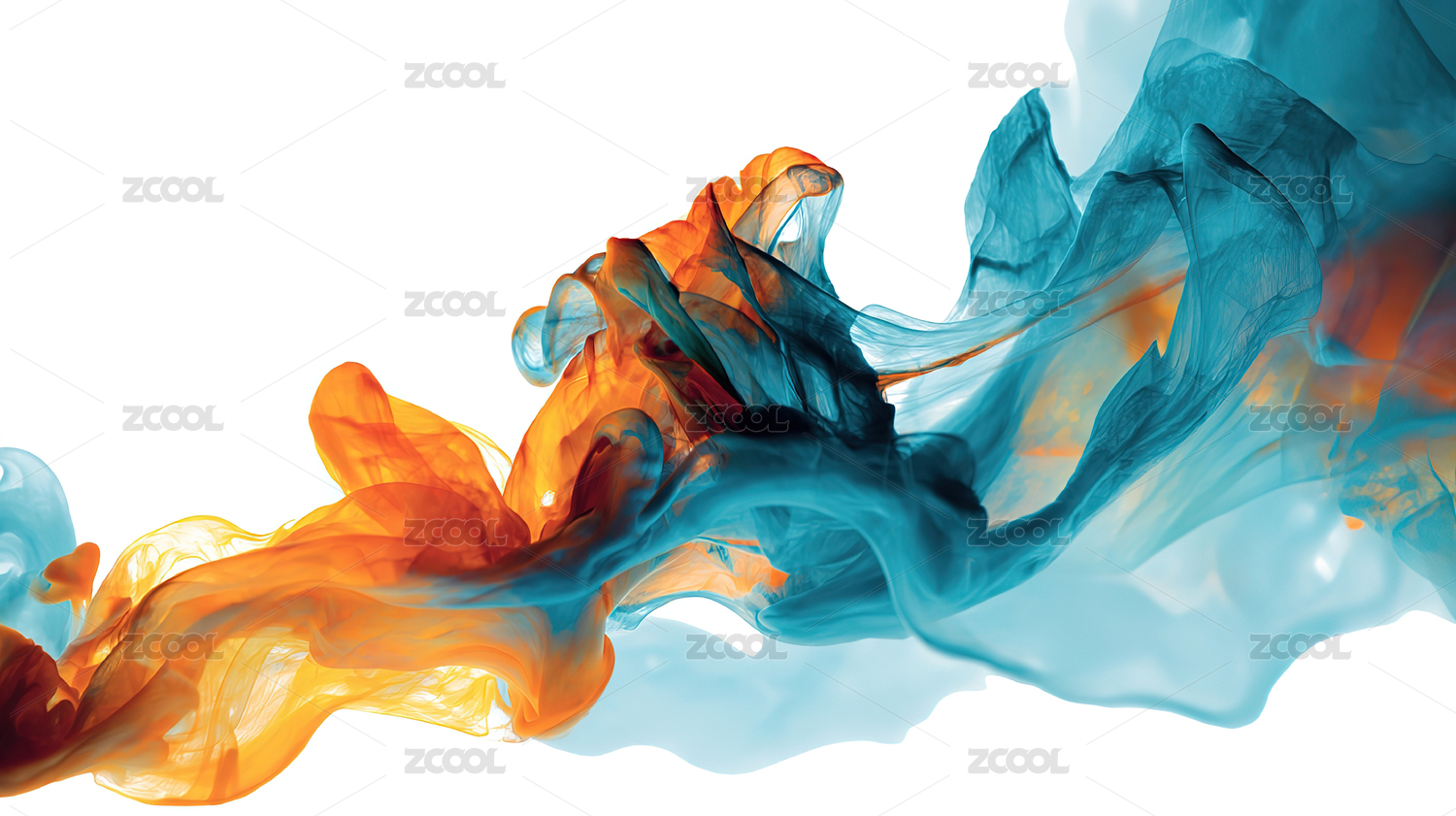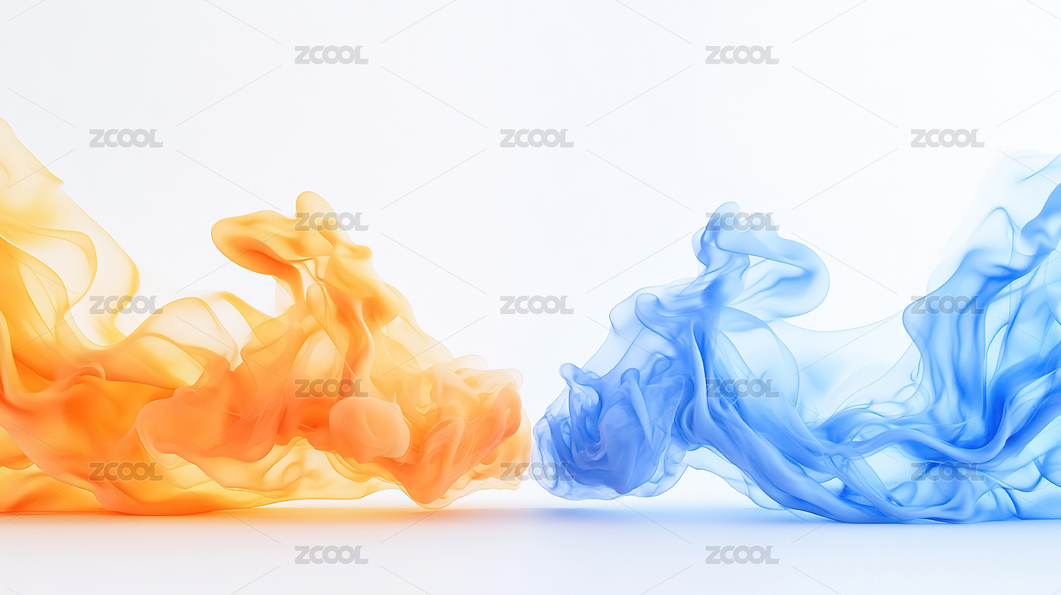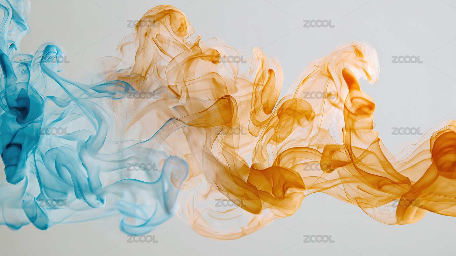 蓝色与橙色烟雾交织的抽象艺术