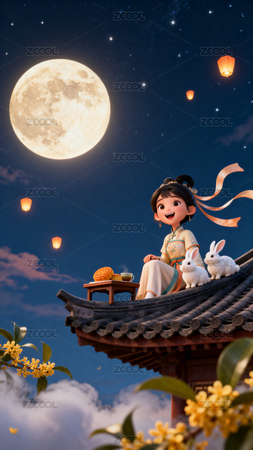 中秋节,中秋,月饼,美食,食物,传统,节日,中国风,国潮风,石桌