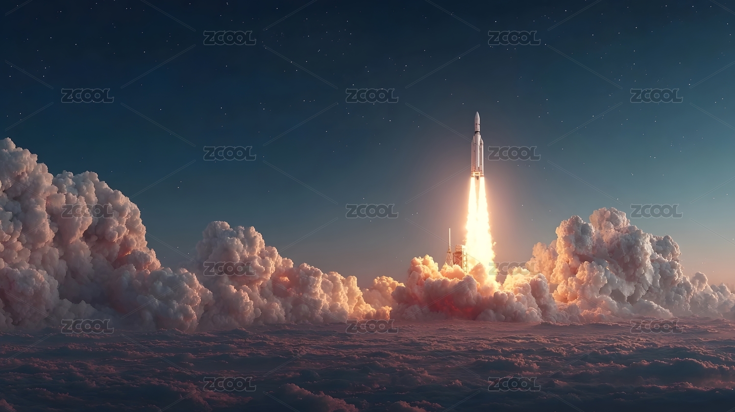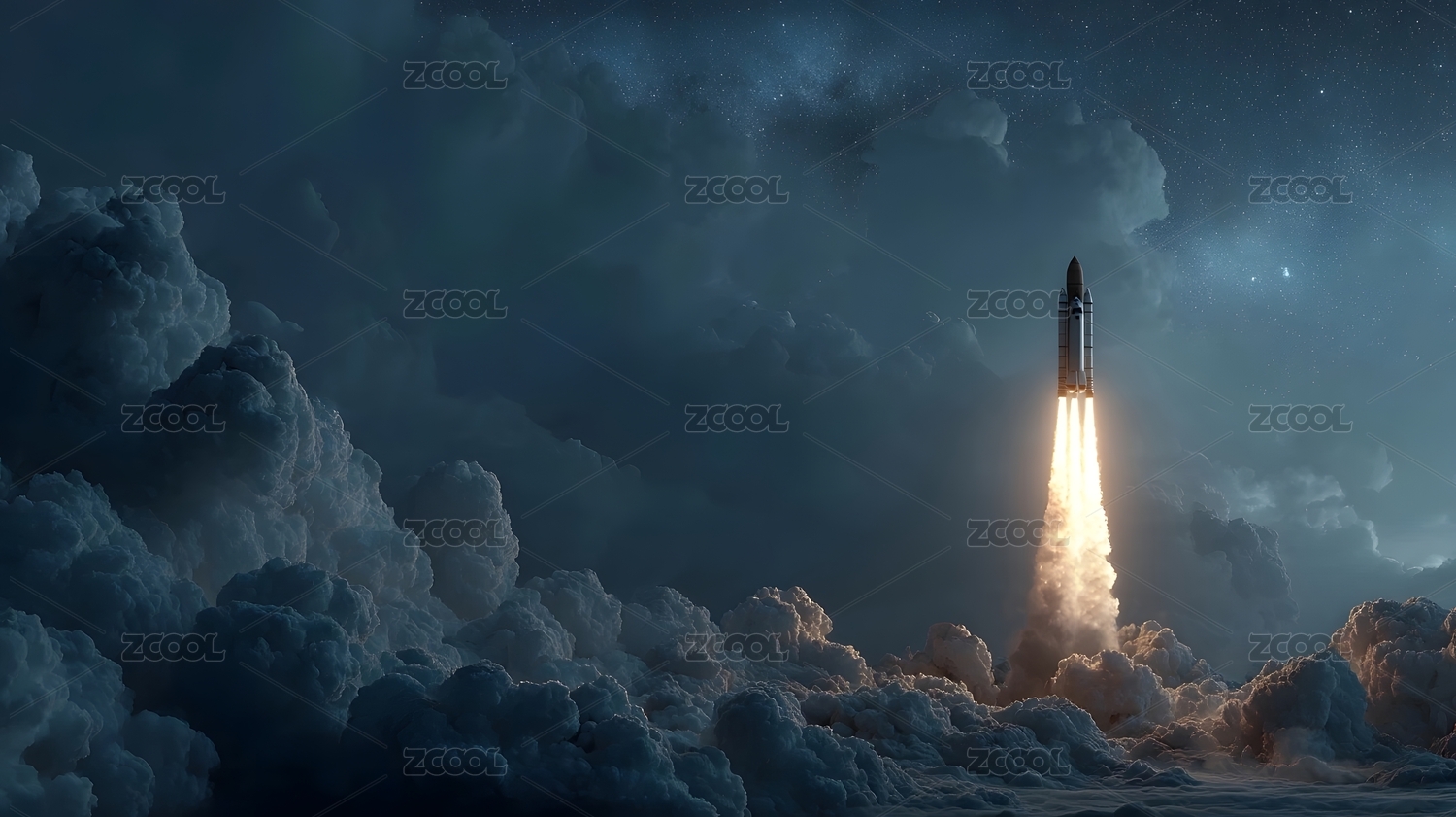 火箭冲破云层直入星空