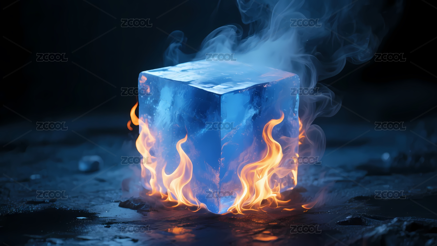 冰块内的火焰与烟雾