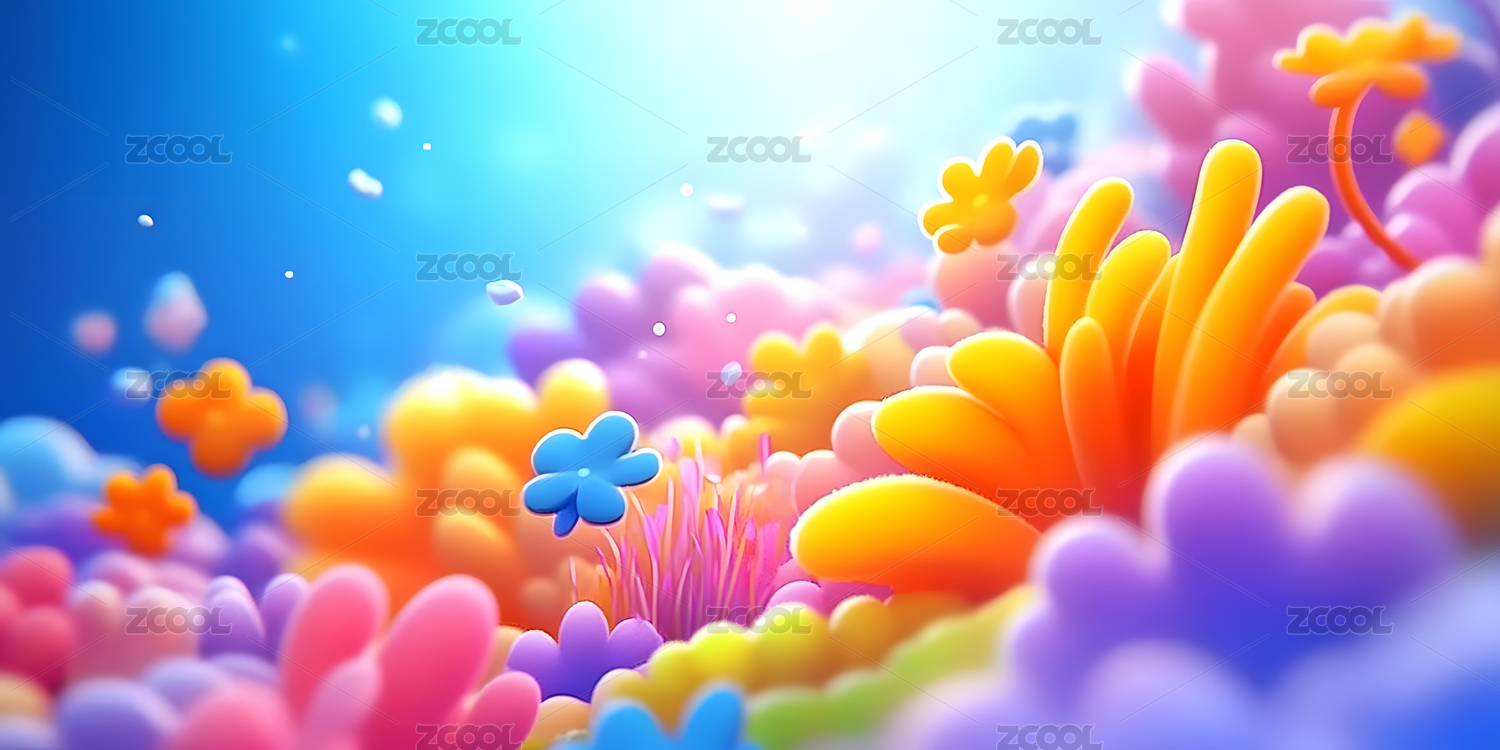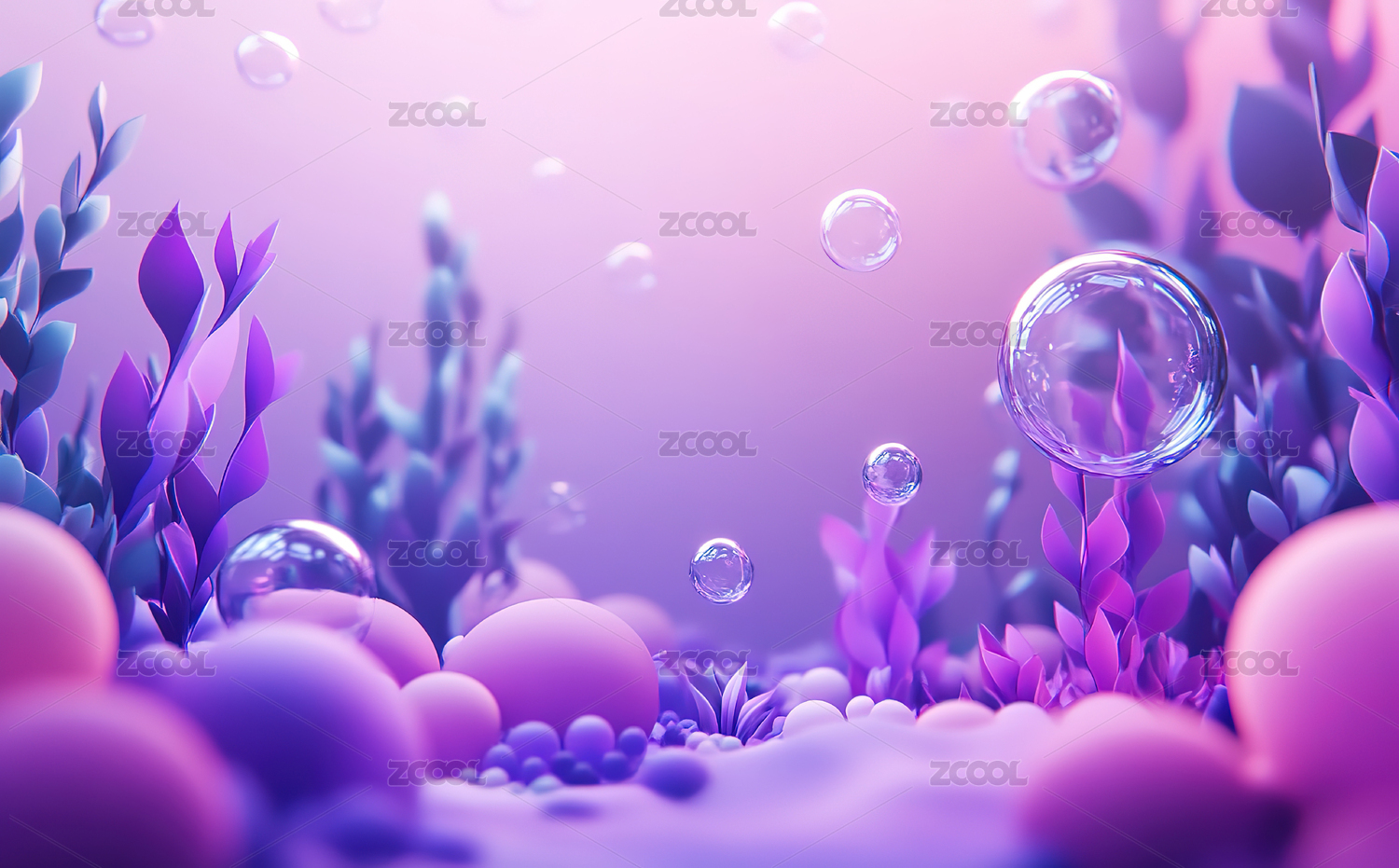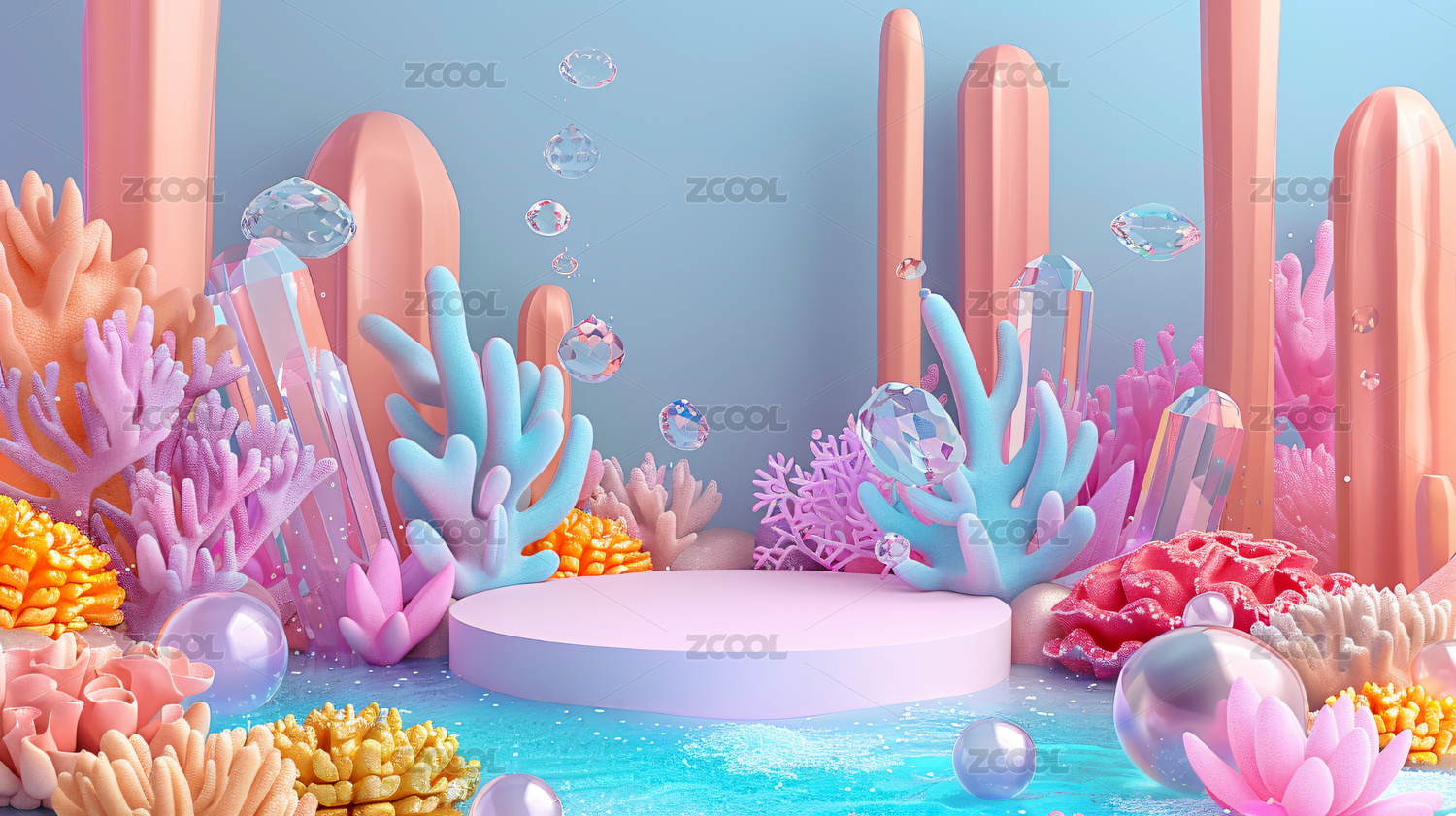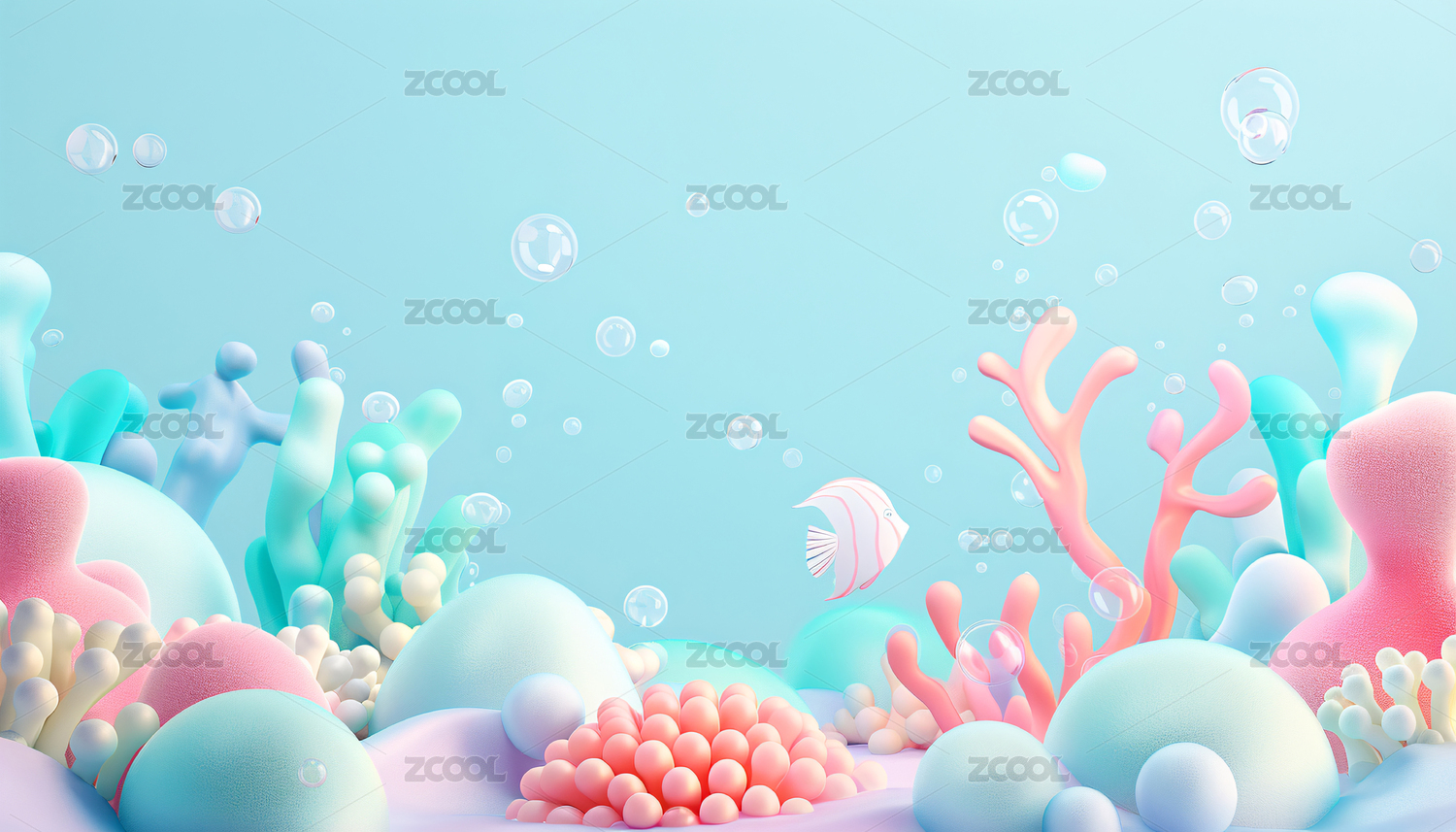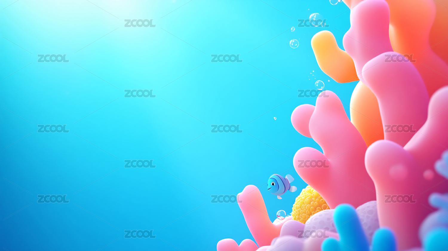 海底世界3D海洋生物珊瑚梦幻唯美自然背景