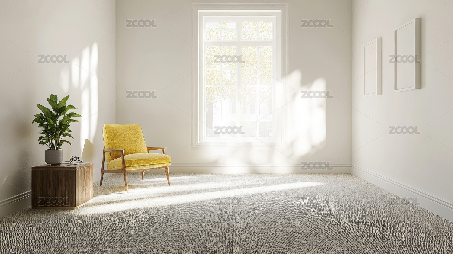 阳光洒落在白色客厅现代简约家