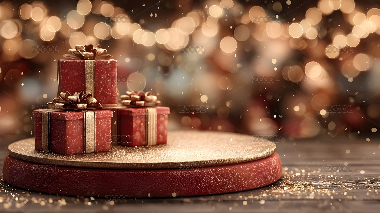 红色礼物盒与金色光斑