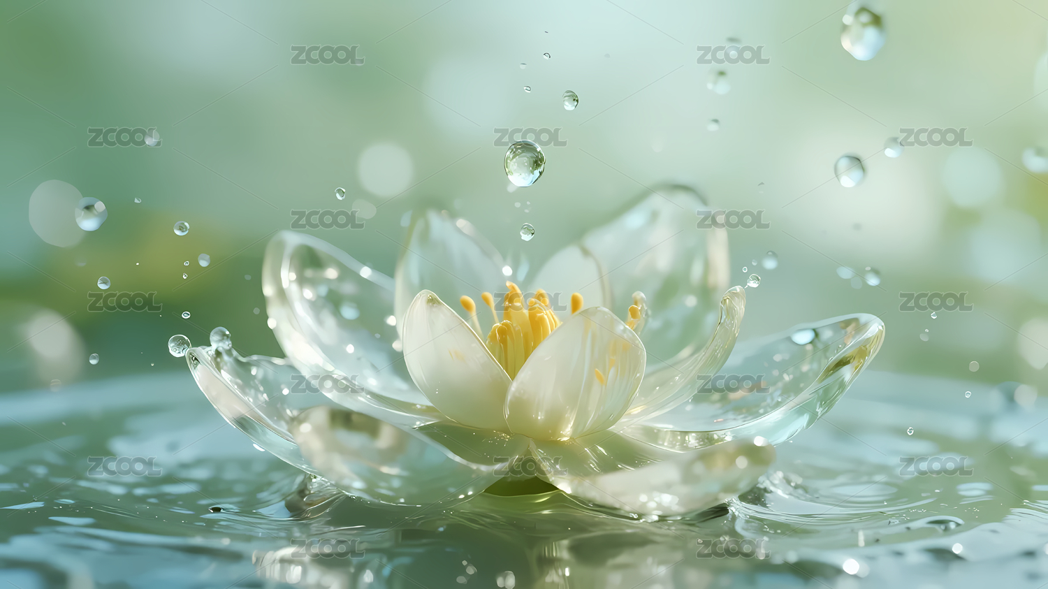 透明,光影,水珠,莲花,倒影,叶片,水面,粉色,高清,自然