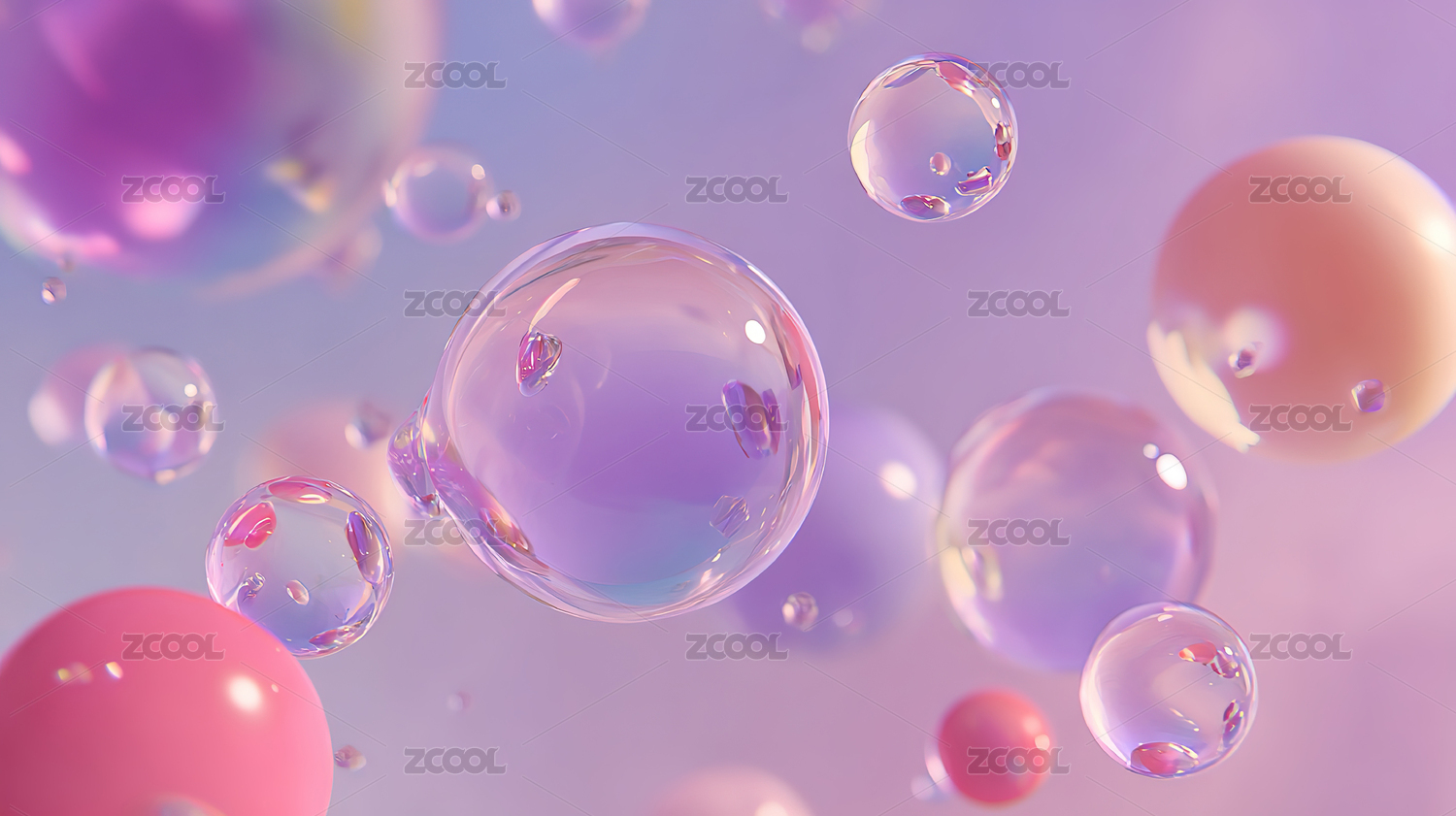 紫色背景下的透明气泡
