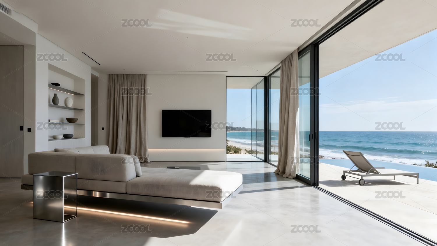 现代简约客厅与海景